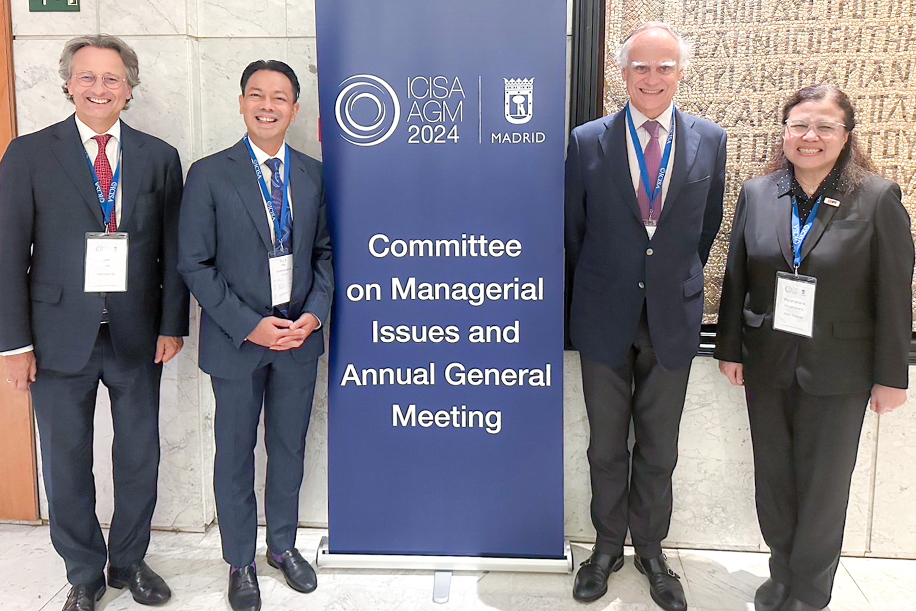 ดร.รักษ์ วรกิจโภคาทร กรรมการผู้จัดการ ธนาคารเพื่อการส่งออกและนำเข้าแห่งประเทศไทย (EXIM BANK) พร้อมด้วยผู้บริหาร EXIM BANK ถ่ายภาพร่วมกับนายเบอนัว เด เครซันเยอร์ ประธานเจ้าหน้าที่บริหาร Allianz Trade Reinsurance และประธานคณะกรรมการบริหาร International Credit Insurance & Surety Association (ICISA) ในโอกาส EXIM BANK เข้าร่วมการประชุมประจำปี ICISA ซึ่งมีผู้แทนองค์กรรับประกันจากภาครัฐและเอกชน และองค์กรรับประกันต่อกว่า 55 แห่งทั่วโลก ณ เมืองมาดริด ประเทศสเปน เมื่อวันที่ 5-7 มิถุนายน 2567 ในฐานะสมาชิกใหม่ในการประชุมครั้งนี้ EXIM BANK ได้แลกเปลี่ยนข้อมูลต่อที่ประชุม ICISA เกี่ยวกับนโยบายและทิศทางการดำเนินงานของ EXIM BANK ในฐานะ Green Development Bank พร้อมทั้งแนวโน้มธุรกิจรับประกันการส่งออกและการลงทุน ตลอดจนบริการประกันต่อ ซึ่งเป็นเครื่องมือสำคัญในการบริหารความเสี่ยงทางการค้าและการลงทุนให้กับผู้ประกอบการไทย เสริมสร้างความมั่นใจให้แก่ผู้ส่งออกและนักลงทุนไทยในการขยายธุรกิจที่เป็นประโยชน์ต่อการพัฒนาอย่างยั่งยืนในระดับประเทศและโลกโดยรวม