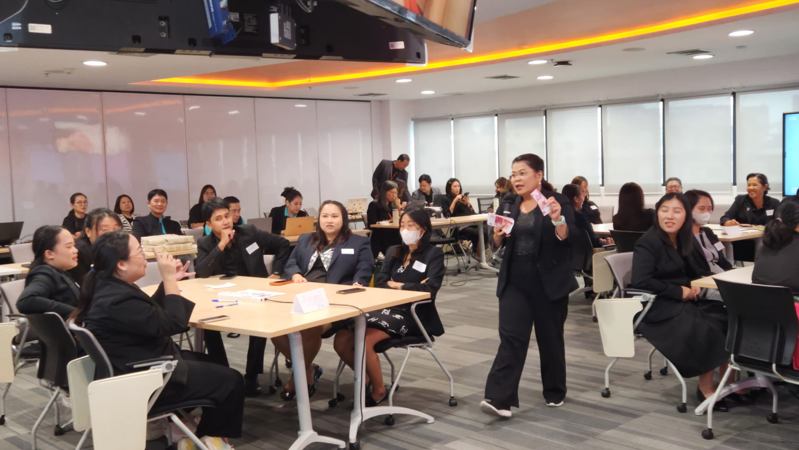 โดยเนื้อหาครอบคลุมตั้งแต่พื้นฐานการจัดทำรายรับ-รายจ่าย การจัดการหนี้ การออม การลงทุน การตั้งเป้าหมายทางการเงินแบบ SMART (Specific-Measurable-Achievable-Relevant-Time-bound) ไปจนถึงงบการเงินส่วนบุคคล เพื่อให้เห็นภาพการจัดการรายรับ-รายจ่าย ทรัพย์สิน และหนี้สินอย่างเป็นระบบ ไฮไลท์คือกิจกรรมบอร์ดเกม Wishlist ที่จำลองสถานการณ์ชีวิตจริง ภายใต้แนวคิด “จัดสรรเงิน เติมความฝัน” ที่ช่วยให้ผู้เล่นเข้าใจหลักการเงินอย่างสนุกสนานและเข้าถึงง่าย จากนั้นลงลึกไปในเนื้อหาเรื่อง ประกันภัย การบริหารความเสี่ยง ผ่านการเล่นเกม Risky Lossy ที่จำลองสถานการณ์ความเสี่ยงในชีวิตให้เห็นความสำคัญของการเตรียมความพร้อม ด้วยเครื่องมือทางการเงินที่เหมาะสม ทำให้ครูได้เห็นตัวเองในมุมที่ไม่เคยรู้มาก่อน ทั้งจุดแข็ง จุดอ่อน และนิสัยการใช้เงินที่ควรปรับตลอดสองวันของกิจกรรมเวิร์กช็อป ครูได้เรียนรู้ทั้งแนวคิดและการลงมือปฏิบัติจริง ช่วยให้เห็นภาพชัดว่าการบริหารเงินเป็นพื้นฐานของการใช้ชีวิตอย่างมีคุณภาพ ที่สามารถส่งต่อให้กับนักเรียนได้