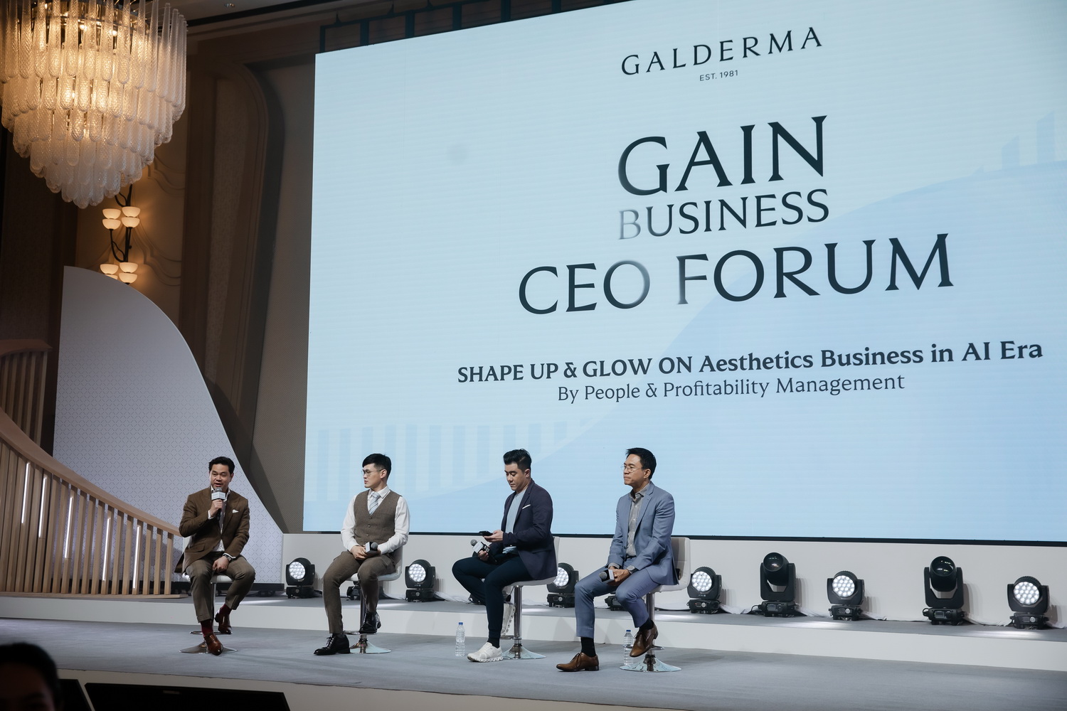 GAIN Business CEO Forum จัดขึ้นภายใต้หัวข้อ SHAPE UP & GLOW ON Aesthetics Business in AI Era by People & Profitability Management โดยเชิญกูรูชั้นนำของไทยมาร่วมแบ่งปันความรู้และแนวทางการบริหารธุรกิจในยุค AI ให้กับธุรกิจคลินิกความงาม ได้แก่ ผศ. ดร.เอกก์ ภทรธนกุล หัวหน้าภาควิชาการตลาด และประธานหลักสูตรปริญญาโทด้านแบรนด์และการตลาด คณะพาณิชยศาสตร์และการบัญชี จุฬาลงกรณ์มหาวิทยาลัย, นายอภิวุฒิ พิมลแสงสุริยา ผู้ก่อตั้ง Slingshot Group โดยมี ดร.วิทย์ สิทธิเวคิน ผู้เชี่ยวชาญด้านเศรษฐศาสตร์ การเงิน การลงทุน และภูมิรัฐศาสตร์ มาร่วมเป็นพิธีกรและแลกเปลี่ยนความคิดเห็นในหัวข้อต่างๆ