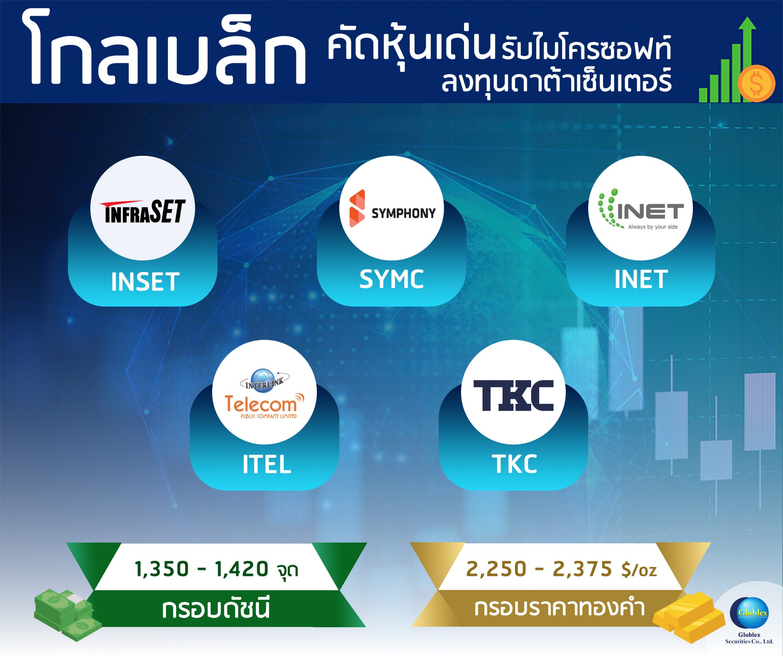 บล. โกลเบล็ก ประเมินหุ้นไทยเดือนพฤษภาคม 2567 ยังคง Sideway หลังเฟดมีมติคงอัตราดอกเบี้ยระยะสั้นที่ระดับ 5.25-5.50% จับตาการประกาศงบไตรมาส 1/2567 ของบริษัทจดทะเบียนจบวันสุดท้าย 15 พ.ค.นี้ จึงให้กรอบดัชนีที่ 1,330-1,380 จุด แนะกลยุทธ์ลงทุนในหุ้นได้ประโยชน์ไมโครซอฟท์ลงทุนดาต้าเซ็นเตอร์ ได้แก่ INSET-SYMC-INET-ITEL-TKC