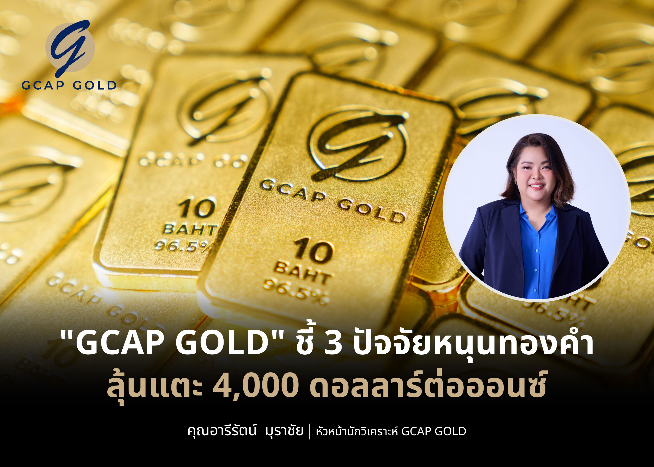 นางสาว อารีรัตน์ มุราชัย หัวหน้านักวิเคราะห์ บริษัท จีแคป จำกัด หรือ GCAP GOLD เปิดเผยว่า หลังจากราคาทองคำพุ่งแรงทะลุระดับ 3,900 ดอลลาร์ต่อออนซ์ ท่ามกลางความคาดหวังว่ากระแสเงินลงทุนจะยังคงไหลเข้าสู่สินทรัพย์ปลอดภัย และหากมีแรงหนุนต่อเนื่องราคาทองคำก็มีโอกาสแตะระดับ 4,000 ดอลลาร์ต่อออนซ์ในอนาคตอันใกล้ ซึ่งเป็นแรงหนุนจาก