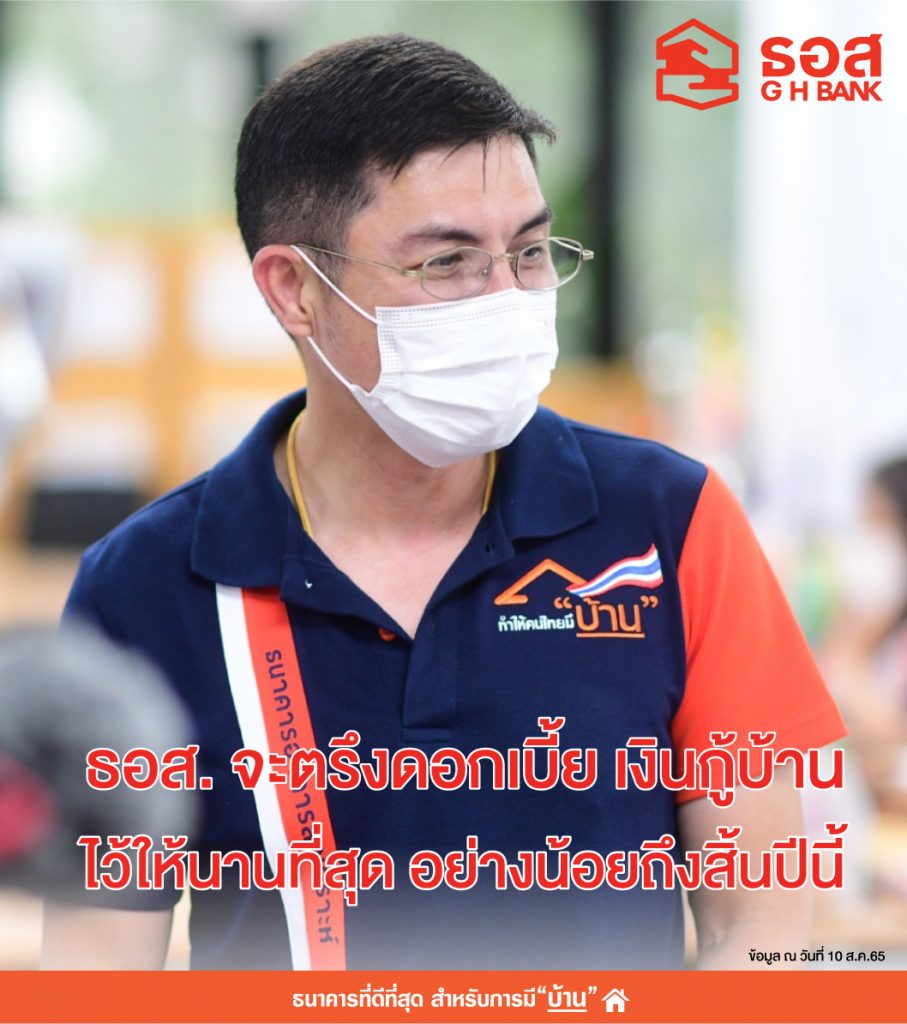 ธอส. ประกาศตรึงอัตราดอกเบี้ยเงินกู้ถึงสิ้นปี 65