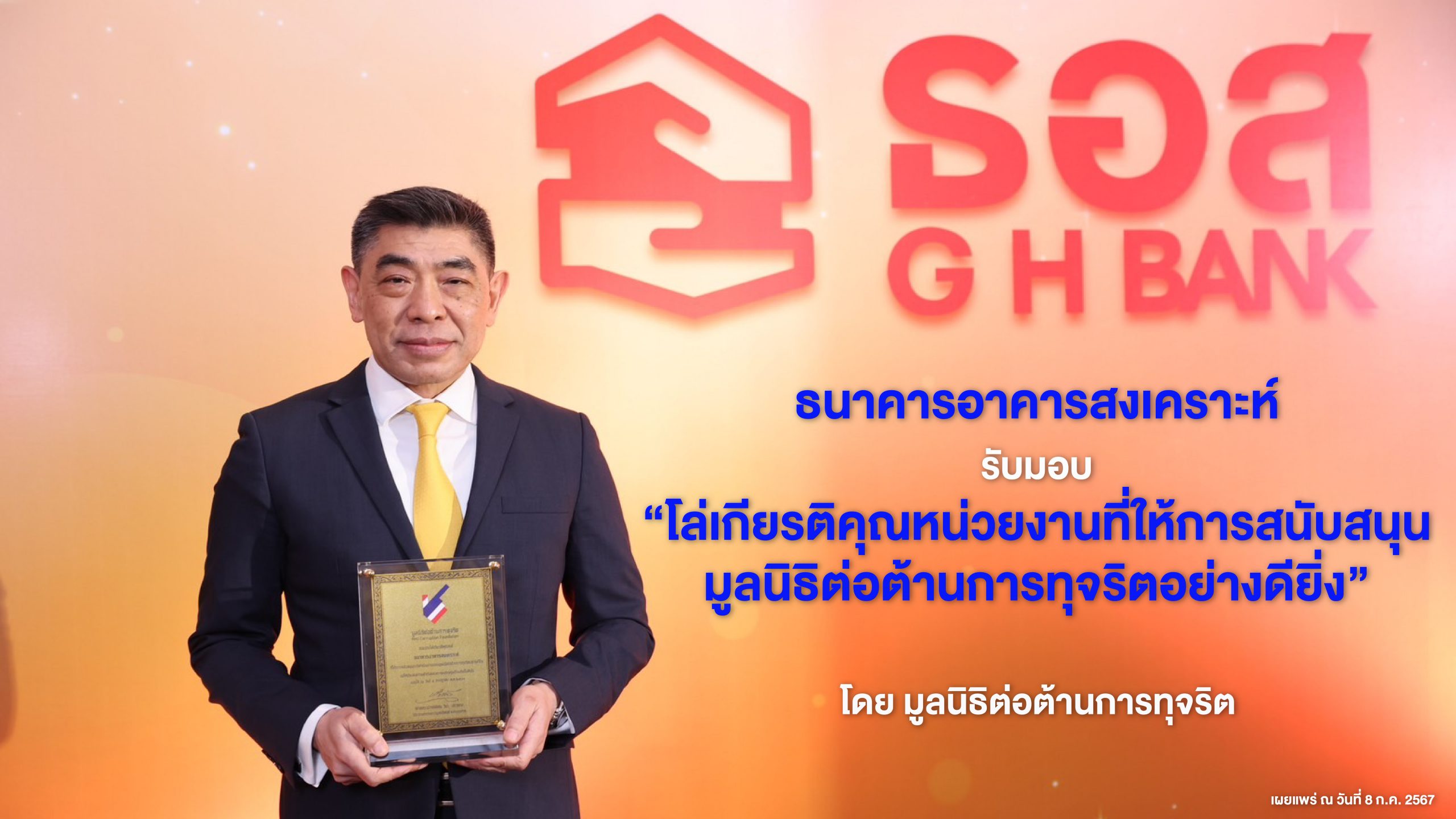 ธนาคารอาคารสงเคราะห์ (ธอส.) รับมอบ “โล่เกียรติคุณหน่วยงานที่ให้การสนับสนุนมูลนิธิต่อต้านการทุจริตอย่างดียิ่ง” เนื่องในโอกาสวันครบรอบ 9 ปี ของการจัดตั้งมูลนิธิต่อต้านการทุจริต โดยศาตราจารย์พิเศษ วิชา มหาคุณ ประธานกรรมการมูลนิธิต่อต้านการทุจริต ให้เกียรติเป็นประธานในพิธี ทั้งนี้ นายกมลภพ วีระพละ กรรมการผู้จัดการ ธอส. เปิดเผยว่า ธนาคารอาคารสงเคราะห์ในฐานะสถาบันการเงินของรัฐ ในสังกัดกระทรวงการคลัง ตระหนักถึงความสำคัญของการดำเนินงานบนพื้นฐานของหลักธรรมาภิบาล และแนวทางการกำกับดูแลกิจการที่ดีในรัฐวิสาหกิจ ส่งเสริม สนับสนุน บริหารงานด้วยความโปร่งใส เป็นธรรม และต่อต้านการทุจริตทุกรูปแบบ โดยธนาคารได้สนับสนุนการดำเนินงานของมูลนิธิต่อต้านการทุจริต และกิจกรรมต่าง ๆ เพื่อป้องกันและต่อต้านการทุจริตและประพฤติมิชอบ อาทิ การแสดงเจตจำนงสุจริต การประกาศตนเป็นหน่วยงานที่ไม่รับของขวัญและของกำนัลในทุกเทศกาล (No Gift Policy) การจัดงานสัมมนาด้านธรรมาภิบาลและการกำกับดูแลที่ดี การร่วมงานวันต่อต้านคอร์รัปชันสากล การจัดตั้งเครือข่ายศูนย์ป้องกันการทุจริต นอกจากนี้ เมื่อวันที่ 27 มิถุนายน 2565 ธนาคารอาคารสงเคราะห์และสมาคมสถาบันการเงินของรัฐได้ร่วมลงนามบันทึกข้อตกลงความร่วมมือ การยกระดับคุณธรรมและความโปร่งใส กับมูลนิธิต่อต้านการทุจริตในการประกาศเจตนารมณ์ที่จะร่วมมือกับมูลนิธิต่อต้านการทุจริต ในการส่งเสริม สนับสนุน เผยแพร่ และดำเนินกิจกรรมเพื่อต่อต้านการทุจริตโดยเมื่อวันที่ 8 กรกฎาคม 2567 ธนาคารอาคารสงเคราะห์เข้ารับมอบ “โล่เกียรติคุณหน่วยงานที่ให้การสนับสนุนมูลนิธิต่อต้านการทุจริตอย่างดียิ่ง” ณ ห้องประชุมใหญ่ อาคารอเนกประสงค์ สถาบันวิชาการป้องกันประเทศ ถนนวิภาวดีรังสิต เขตดินแดง กรุงเทพมหานคร