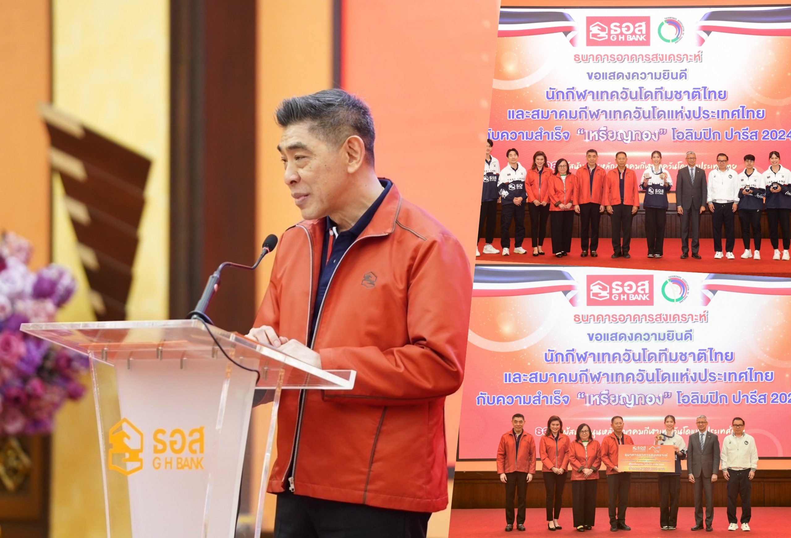 ธนาคารอาคารสงเคราะห์ (ธอส.) ให้การต้อนรับนักกีฬาเทควันโดทีมชาติไทย ในโอกาสมาแสดงความขอบคุณ ในฐานะผู้สนับสนุนหลักของสมาคมกีฬาเทควันโดแห่งประเทศไทย ตั้งแต่ปี 2549 ถึงปัจจุบัน โดย ธอส. พร้อมมอบเงินรางวัลพิเศษรวม 4 ล้านบาท ให้แก่นักกีฬาและผู้ฝึกสอนกีฬาเทควันโดทีมชาติไทย หลังคว้าชัยในการแข่งขันโอลิมปิก ปารีส 2024 นำมาซึ่งความสุขและความภาคภูมิใจมาสู่คนไทยทั้งประเทศ