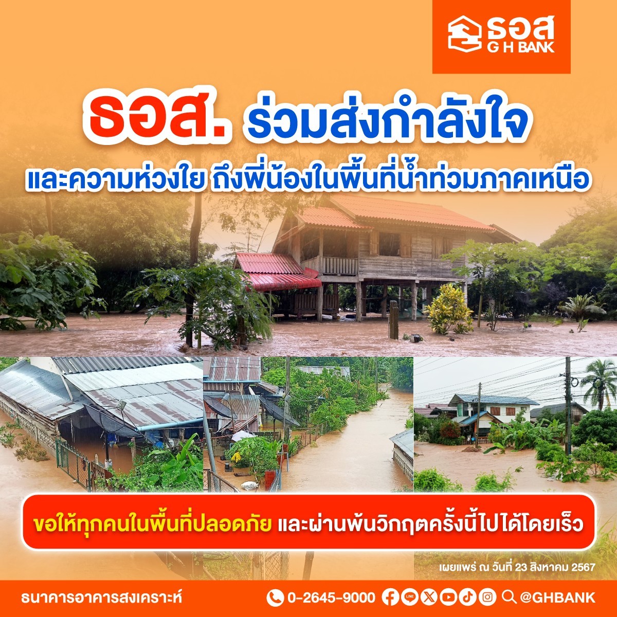 ธอส. ช่วยเหลือพี่น้องชาวภาคเหนือ ที่ประสบปัญหาภัยพิบัติทางธรรมชาติ ฝนตกหนัก น้ำท่วมฉับพลัน น้ำป่าไหลหลาก ดินโคลนถล่ม ด้วยการจัดทำ “มาตรการช่วยเหลือผู้ประสบภัยพิบัติทางธรรมชาติ ปี 2567” โดยลูกค้าและประชาชนที่ประสบภัยสามารถติดต่อสาขาธนาคารทั่วประเทศ เพื่อขอรับความช่วยเหลือได้ตั้งแต่วันนี้ถึงวันที่ 30 ธันวาคม 2567