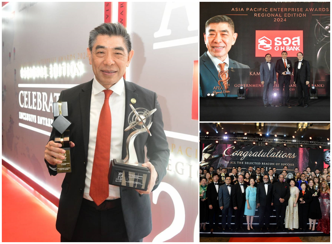 ธนาคารอาคารสงเคราะห์ (ธอส.) คว้า 2 รางวัลใหญ่ระดับภูมิภาคเอเชีย Asia Pacific Enterprise Awards (APEA) 2024 ประกอบด้วย 1) รางวัล Corporate Excellence Award–องค์กรยอดเยี่ยมในกลุ่มอุตสาหกรรมการเงิน ซึ่ง ธอส. ได้รับเป็นปีที่ 3 ติดต่อกัน และ 2) รางวัล Master Entrepreneur Award–ผู้นำองค์กรดีเด่นในกลุ่มอุตสาหกรรมการเงิน มอบให้แก่ นายกมลภพ วีระพละ กรรมการผู้จัดการ ธอส. สะท้อนความเป็นเลิศและความแข็งแกร่งของธนาคาร