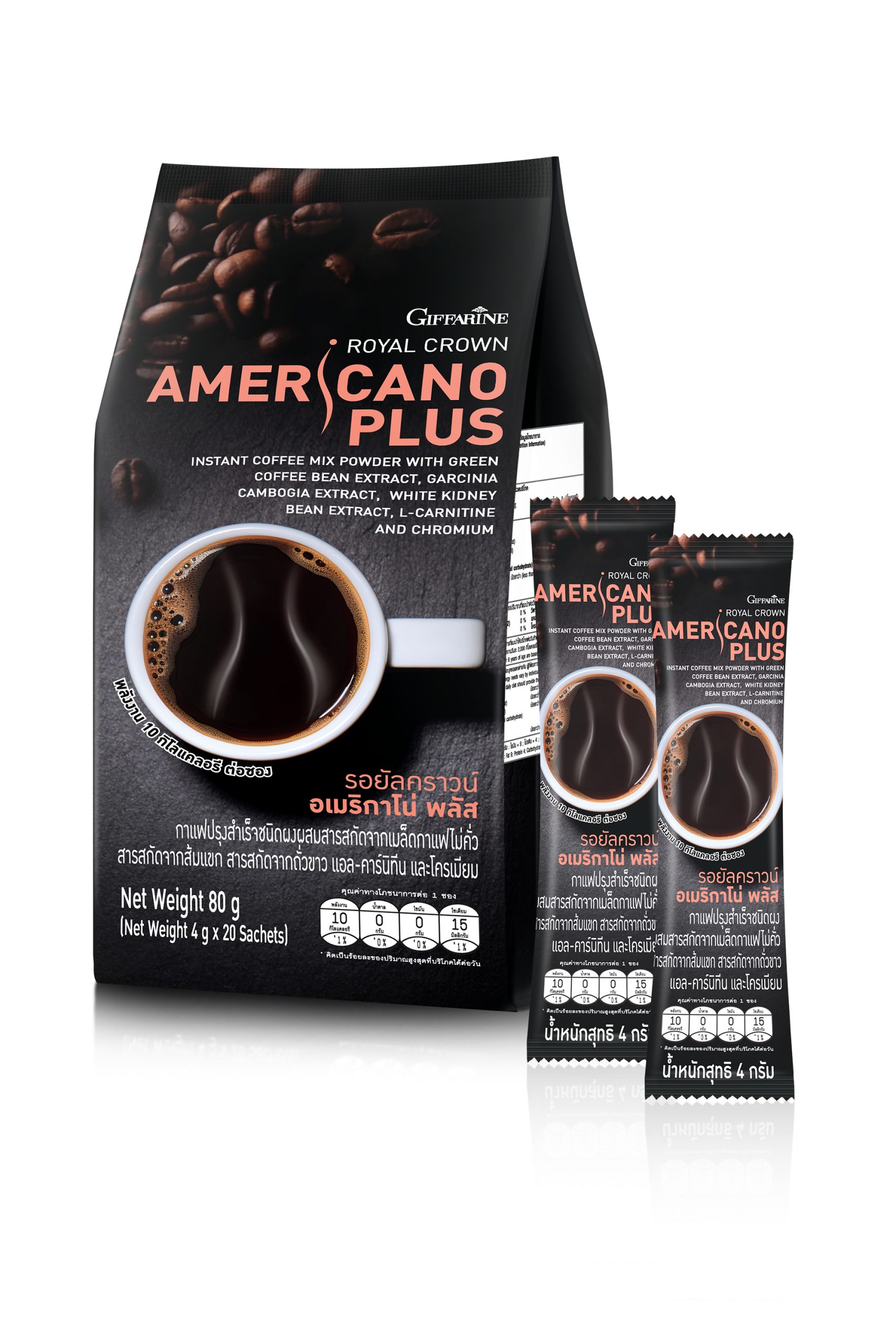 เคล็ดลับหุ่นสวย : สาว ๆ ที่เลิฟกาแฟ แต่ก็กังวลเรื่องรูปร่าง กิฟฟารีน ขอแนะนำผลิตภัณฑ์ผู้ช่วยดี ๆ ให้กับทุกคน กับ Royal Crown Americano Plus (รอยัลคราวน์ อเมริกาโน่ พลัส) พลัสสิ่งดีๆ แต่ไม่พลัสไซส์ อร่อยเข้ม พร้อมประโยชน์เพื่อหุ่นสวยและสุขภาพที่ดี เหมาะสำหรับผู้ที่ชื่นชอบกาแฟอเมริกาโน่และต้องการดูแลรูปร่าง มีส่วนผสมของสารสำคัญ ที่มีงานวิจัยว่ามีส่วนช่วยในการดูแลรูปร่าง 5 ชนิด ได้แก่ สารสกัดจากเมล็ดกาแฟไม่คั่ว, สารสกัดจากส้มแขก, สารสกัดจากถั่วขาว, แอล-คาร์นิทีน และโครเมียม อยากหุ่นสวยเริ่มได้จากซองนี้ ดื่มง่าย ๆ แค่ฉีกซอง ให้พลังงาน 10 กิโลแคลอรี/ซอง บรรจุในขนาด 20 ซอง (4 กรัม/ซอง) ราคา 175 บาท