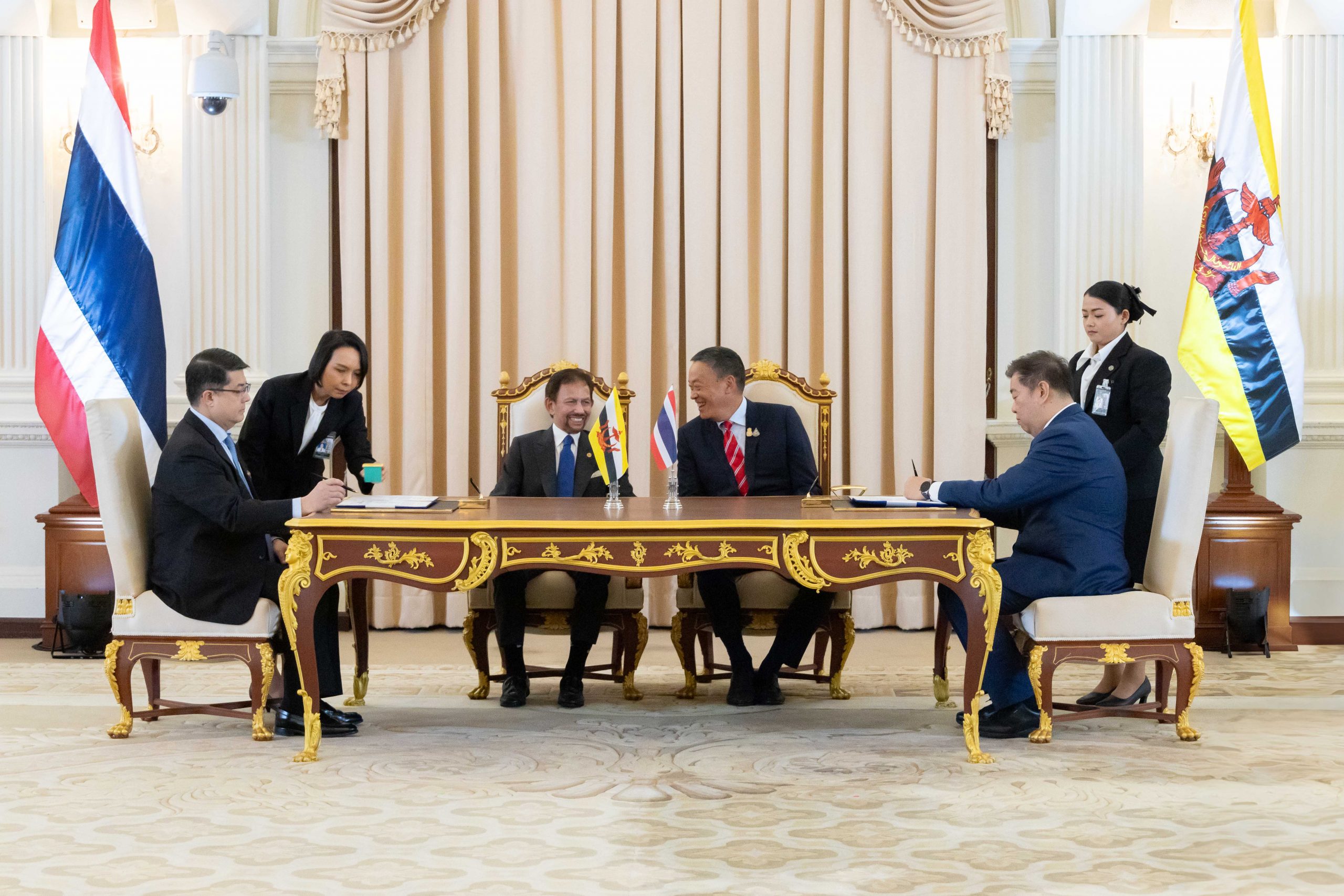 สมเด็จพระราชาธิบดีฮาจี ฮัซซานัล บลเกียะฮ์ แห่งบรูไนดารุสซาลาม และนายเศรษฐา ทวีสิน นายกรัฐมนตรี ร่วมเป็นสักขีพยานในพิธีลงนามความตกลง (MOU) ในการริเริ่มสร้างความร่วมมือด้านการลงทุนที่มีศักยภาพ ระหว่างกองทุนบำเหน็จบำนาญข้าราชการ (กบข.) และองค์กรการลงทุนเพื่อบริหารทุนสำรองของบรูไนดารุสซาลาม (Brunei Investment Agency : BIA) ณ ตึกสันติไมตรี ทำเนียบรัฐบาล เมื่อวันที่ 29 เมษายน 2567