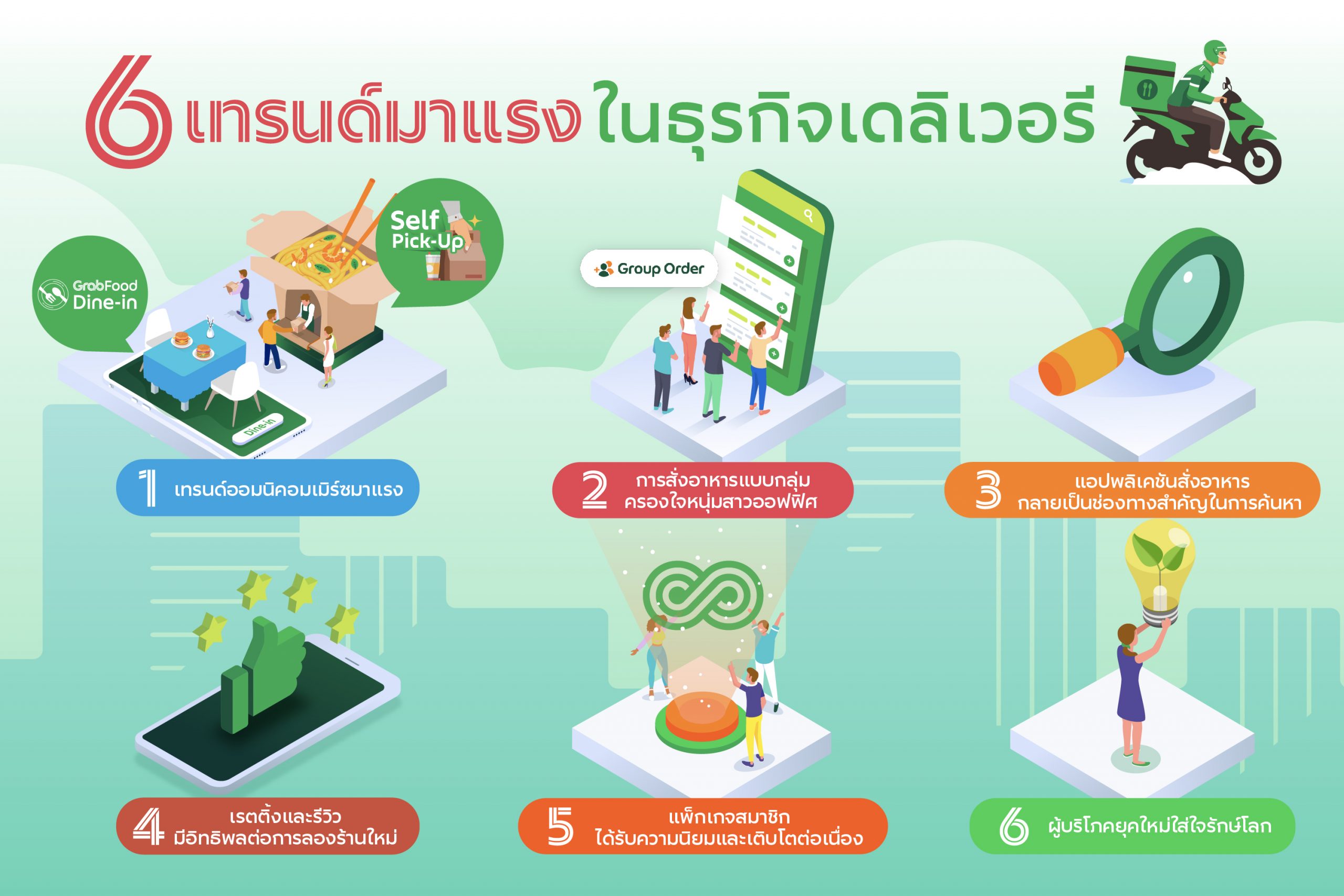 ทั้งนี้ แกร็บได้จัดทำรายงาน “เทรนด์การสั่งอาหารและของใช้ในบ้าน ปี 2566” เพื่อศึกษาพฤติกรรมการใช้บริการเดลิเวอรี ทั้งการสั่งอาหารและการซื้อสินค้าในชีวิตประจำวัน พร้อมสำรวจความคิดเห็นของผู้ใช้บริการแกร็บใน 6 ประเทศ ซึ่งรวมถึงประเทศไทย โดยพบเทรนด์ที่สำคัญในประเทศไทย คือ