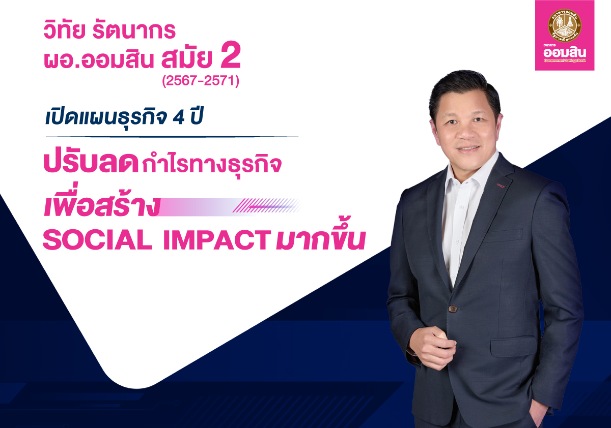 ออมสิน เปิดแผนธุรกิจ 4 ปี ภายใต้การนำของ วิทัย รัตนากร สมัยที่ 2 ตั้งเป้าปรับลดกำไรเพื่อสร้าง Social Impact พร้อมยกระดับสนับสนุนนโยบายรัฐ