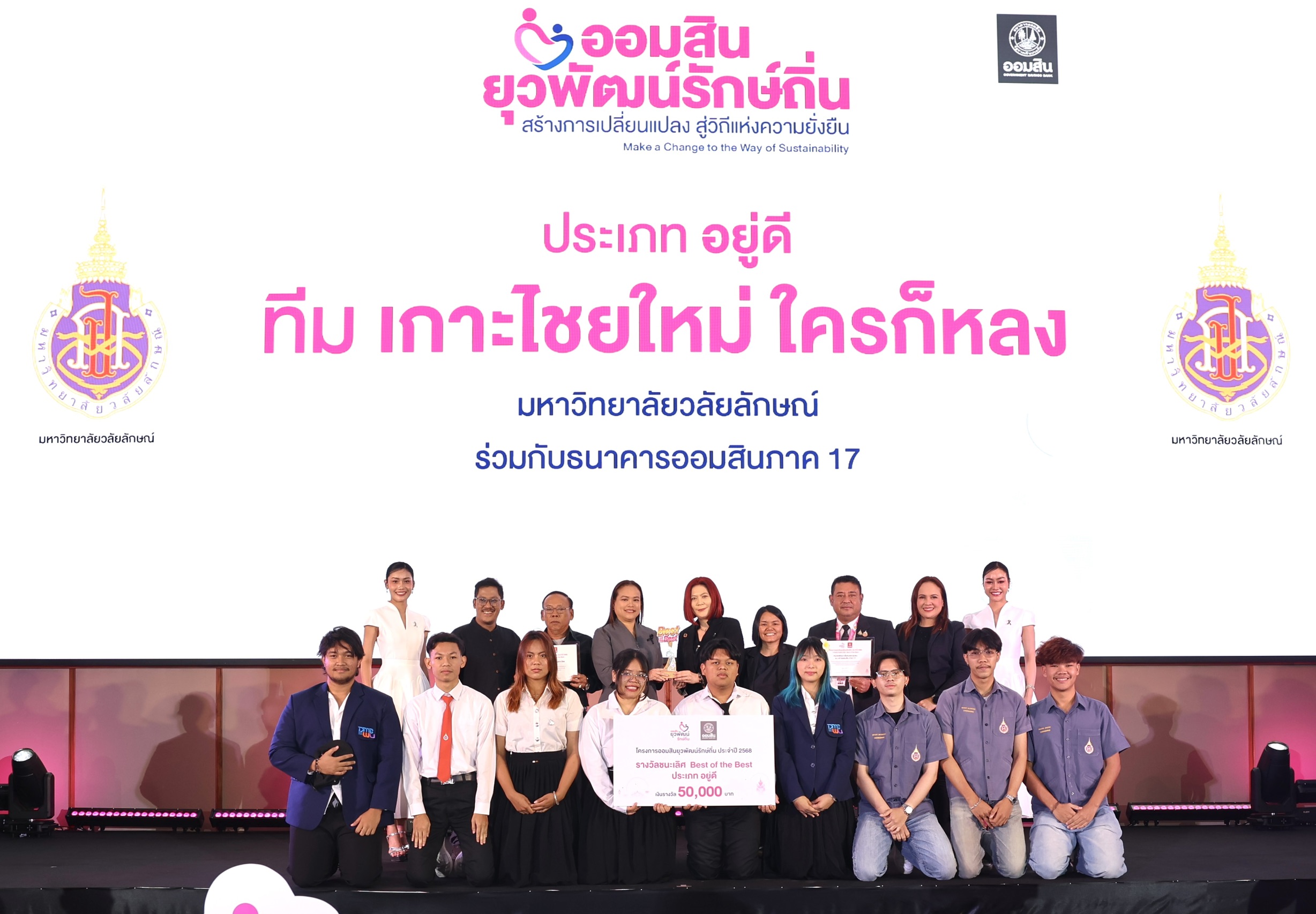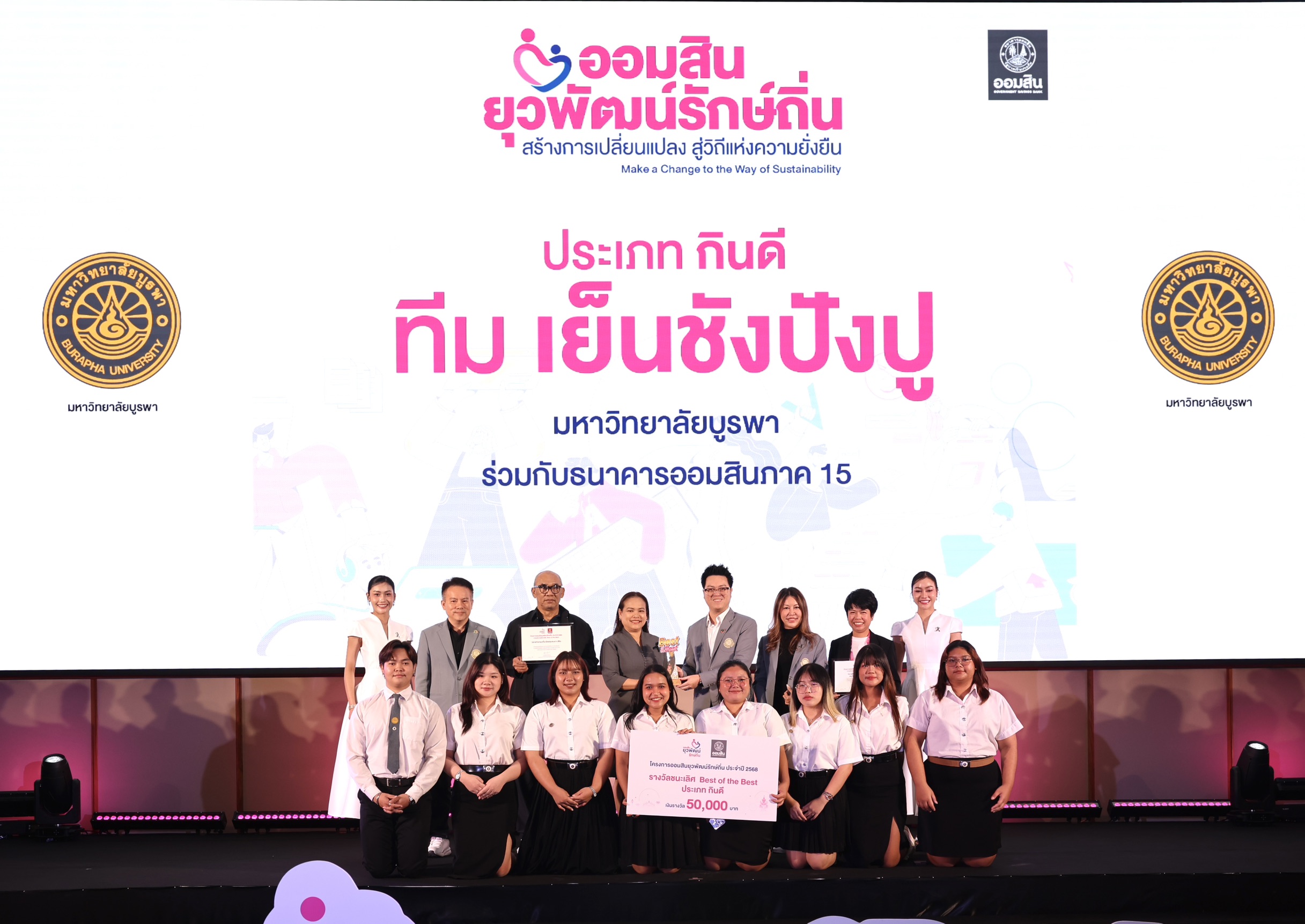 -ประเภทคิดดี – ทีม Smart Eco Plus+ มหาวิทยาลัยราชภัฏพิบูลสงคราม พัฒนาวิสาหกิจชุมชนเกษตรอินทรีย์วิถีพอเพียง 459 อ.พรหมพิราม จ.พิษณุโลก ด้วยผลิตภัณฑ์ “Me-Leave” สเปรย์สะท้อนน้ำนวัตกรรมซิลิก้าจากใบไผ่ ให้คุณสมบัติในการปกป้องผ้า Eco-Print จากน้ำ ตลอด 9 ปีที่ผ่านมา โครงการ “ออมสินยุวพัฒน์รักษ์ถิ่น” ได้สร้างประโยชน์ให้แก่ชุมชนแล้วกว่า 2,400 ชุมชน และเปิดโอกาสให้เยาวชนมากกว่า 17,000 คน จากสถาบันอุดมศึกษา 67 แห่งทั่วประเทศ ได้เรียนรู้จากการลงมือปฏิบัติจริง พร้อมเกิดความเข้าใจในคุณค่าของภูมิปัญญาท้องถิ่น การทำงานร่วมกับชุมชน และการพัฒนาต้นแบบผลิตภัณฑ์และบริการที่สามารถสร้างรายได้และต่อยอดได้ในอนาคต โครงการนี้เป็นส่วนหนึ่งของการขับเคลื่อนบทบาท “ธนาคารเพื่อสังคม” ของธนาคารออมสิน อย่างต่อเนื่อง เพื่อมุ่งพัฒนาชุมชนให้เข้มแข็งด้วยศักยภาพของคนในพื้นที่ และส่งเสริมให้เกิดโอกาสในการยกระดับคุณภาพชีวิตอย่างยั่งยืน พร้อมเดินหน้าสร้างผลลัพธ์ที่เป็นรูปธรรมแก่ชุมชนทั่วประเทศในระยะยาว