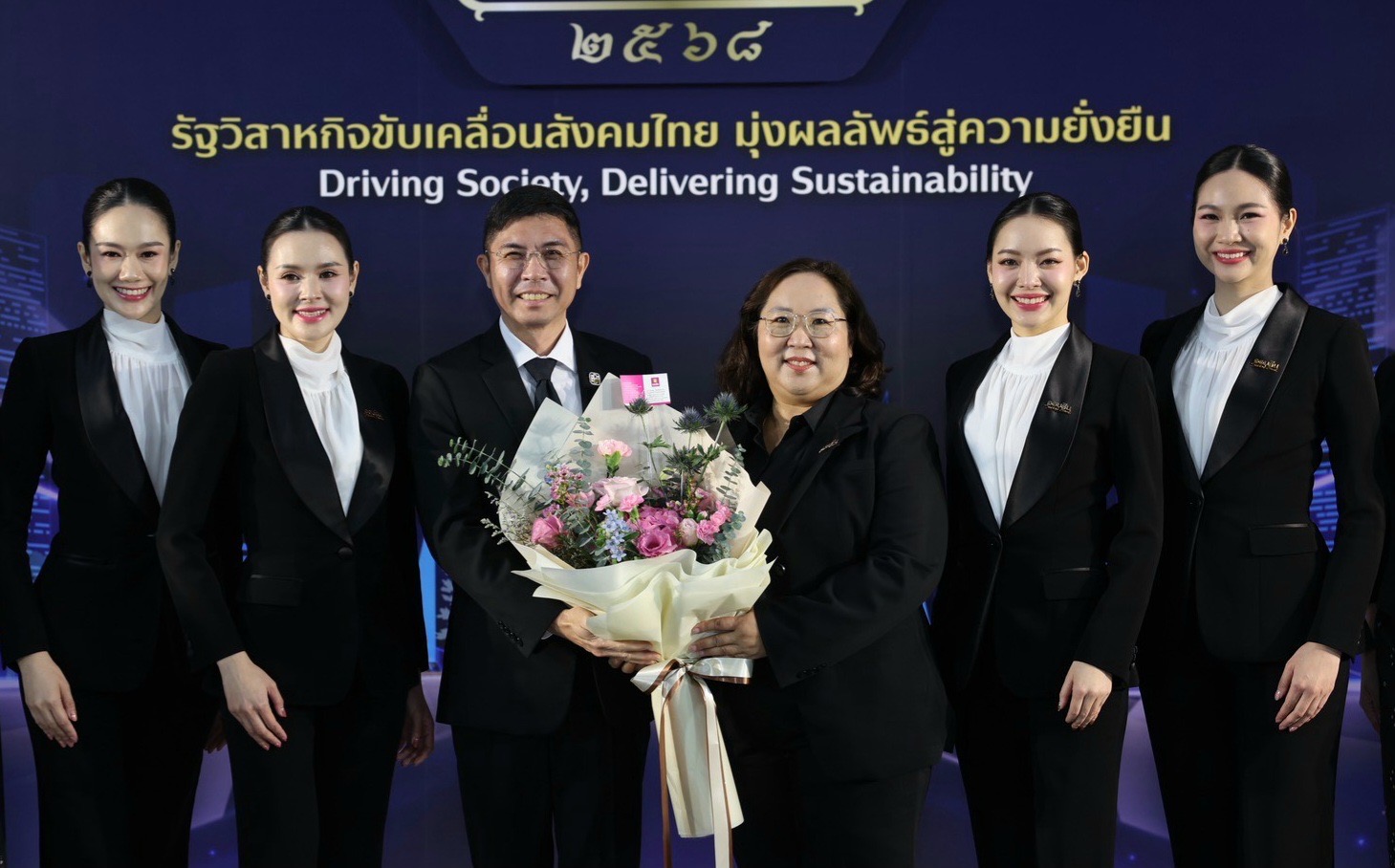 นางลภาวรรณ จันทร์กระจ่าง รองผู้อำนวยการธนาคารออมสิน รักษาการแทนผู้อำนวยการธนาคารออมสิน แสดงความยินดีกับ นายฉัตรชัย ศิริไล ผู้จัดการธนาคารเพื่อการเกษตรและสหกรณ์การเกษตร (ธ.ก.ส.) ในโอกาสที่ ธ.ก.ส. ได้รับรางวัลคณะกรรมการดีเด่นและอีกหลายรางวัล ในงานมอบรางวัลรัฐวิสาหกิจดีเด่น (SOE Awards) ประจำปี 2568 ซึ่งจัดโดย สำนักงานคณะกรรมการนโยบายรัฐวิสาหกิจ กระทรวงการคลัง เพื่อยกย่องรัฐวิสาหกิจที่มีผลการดำเนินงานโดดเด่นในแต่ละด้าน เป็นกำลังใจและส่งเสริมให้รัฐวิสาหกิจทุกแห่งมีความมุ่งมั่นในการขับเคลื่อนองค์กรอย่างมีประสิทธิภาพ สร้างคุณค่าต่อเศรษฐกิจและสังคมของประเทศ ณ ตึกสันติไมตรี ทำเนียบรัฐบาล เมื่อวันที่ 22 ธันวาคม 2568