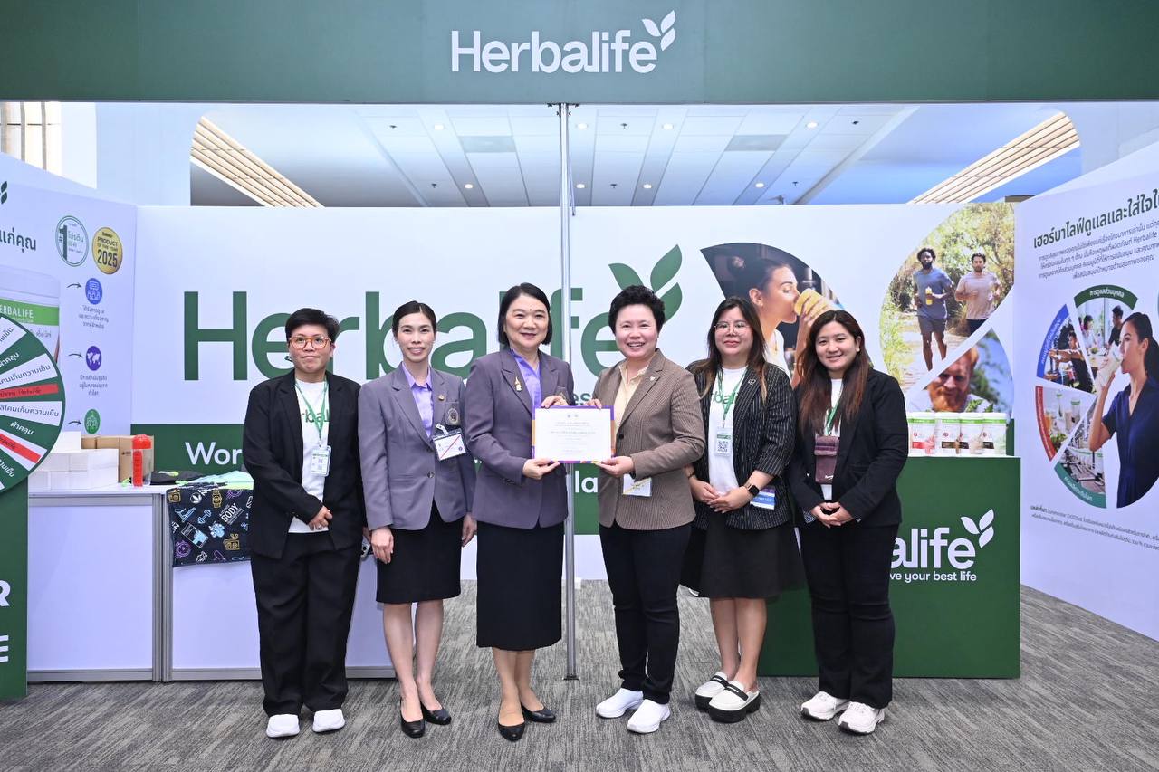 นำโดย ดร.ภญ.วิภาดา แซ่เล้า (ที่ 3 จากขวา) ผู้จัดการอาวุโสฝ่ายการศึกษาและฝึกอบรมด้านโภชนาการ เฮอร์บาไลฟ์ เอเชียแปซิฟิก พร้อมทีมตัวแทนจากเฮอร์บาไลฟ์ เข้าร่วมกิจกรรม โดยมี รองศาสตราจารย์ ดร.เรวดี จงสุวัฒน์ (ที่ 4 จากขวา) นายกสมาคมโภชนาการแห่งประเทศไทยฯ ในพระราชูปถัมภ์สมเด็จพระเทพรัตนราชสุดา ฯ สยามบรมราชกุมารี ร่วมมอบประกาศเกียรติคุณ การสนับสนุนในครั้งนี้สะท้อนถึงพันธกิจของเฮอร์บาไลฟ์ ประเทศไทย ที่มุ่งส่งเสริมสุขภาพและความเป็นอยู่ที่ดีของคนไทย ผ่านการสร้างความตระหนักรู้เกี่ยวกับความสำคัญของโภชนาการที่สมดุล เพื่อการมีชีวิตที่แข็งแรงและยั่งยืน