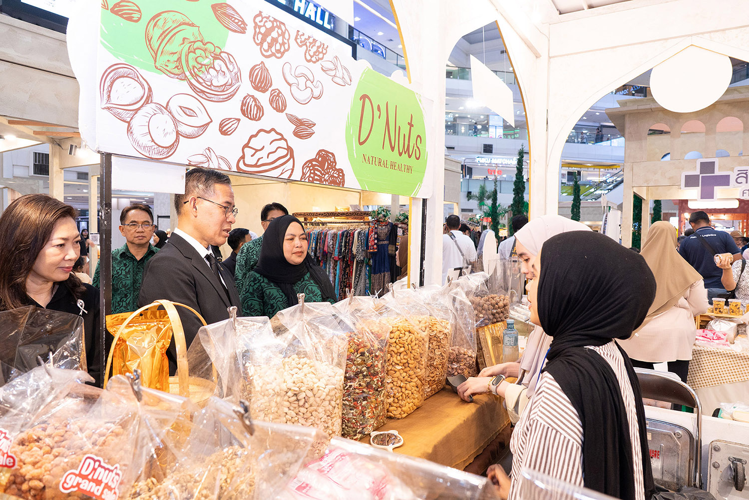นอกจากนี้ ภายในงาน “ฮาลาลมหานคร” ยังได้รวบรวมผู้ประกอบการกว่า 70 ราย จากทั่วประเทศ มาจัดแสดงและจำหน่ายสินค้าฮาลาลคุณภาพ เช่น อาหาร เครื่องดื่ม เสื้อผ้า เครื่องสำอาง และผลิตภัณฑ์อุปโภคบริโภค โดยได้รับความสนใจจากประชาชนและนักธุรกิจเป็นจำนวนมาก สะท้อนให้เห็นถึงพลังของความร่วมมือในการสร้างเศรษฐกิจฮาลาลไทยให้เข้มแข็ง เติบโต และยั่งยืน ภายใต้แนวคิด “ไอแบงก์…เรา…ไม่ทิ้งกัน”