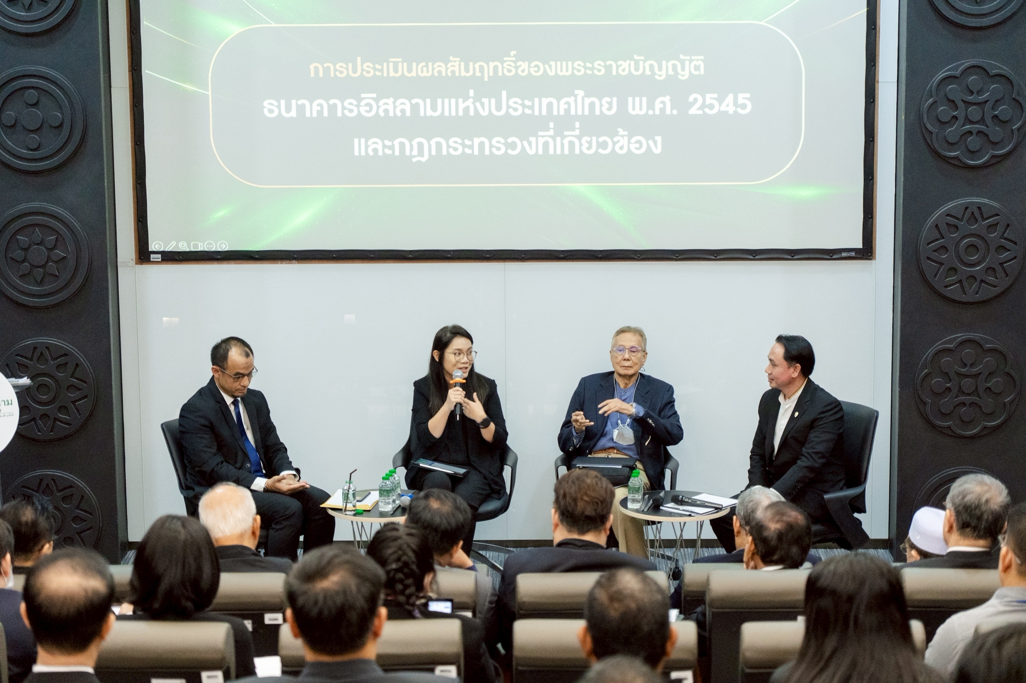 ดร. ทวีลาภ ฤทธาภิรมย์ เปิดเผยว่า “การประเมินผลสัมฤทธิ์ของพระราชบัญญัติธนาคารอิสลามแห่งประเทศไทย พ.ศ. 2545 และกฎกระทรวงที่เกี่ยวข้อง เป็นขั้นตอนสำคัญในการทบทวนบทบาทและกลไกการดำเนินงานของธนาคารภายใต้หลักชะรีอะฮ์ ท่ามกลางสภาพแวดล้อมทางเศรษฐกิจ สังคม และเทคโนโลยีที่เปลี่ยนแปลงอย่างรวดเร็ว เพื่อให้กฎหมายสามารถรองรับการพัฒนาระบบการเงินอิสลามของประเทศได้อย่างมีประสิทธิภาพในอนาคต โดยงานเสวนาในวันนี้เป็นการเปิดพื้นที่ให้ผู้เชี่ยวชาญ หน่วยงานภาครัฐ ภาควิชาการ ผู้นำศาสนา ผู้ประกอบการ และผู้ใช้บริการของธนาคาร ได้สะท้อนมุมมองและข้อเสนอแนะอย่างรอบด้าน เพื่อร่วมกันกำหนดแนวทางพัฒนากฎหมายให้สอดคล้องกับความต้องการของประชาชน และทิศทางระบบการเงินอิสลามในอนาคต ซึ่งจะเป็นข้อมูลสำคัญในการยกระดับกฎหมาย ให้สามารถตอบโจทย์ประชาชนและการพัฒนาประเทศได้อย่างยั่งยืน”