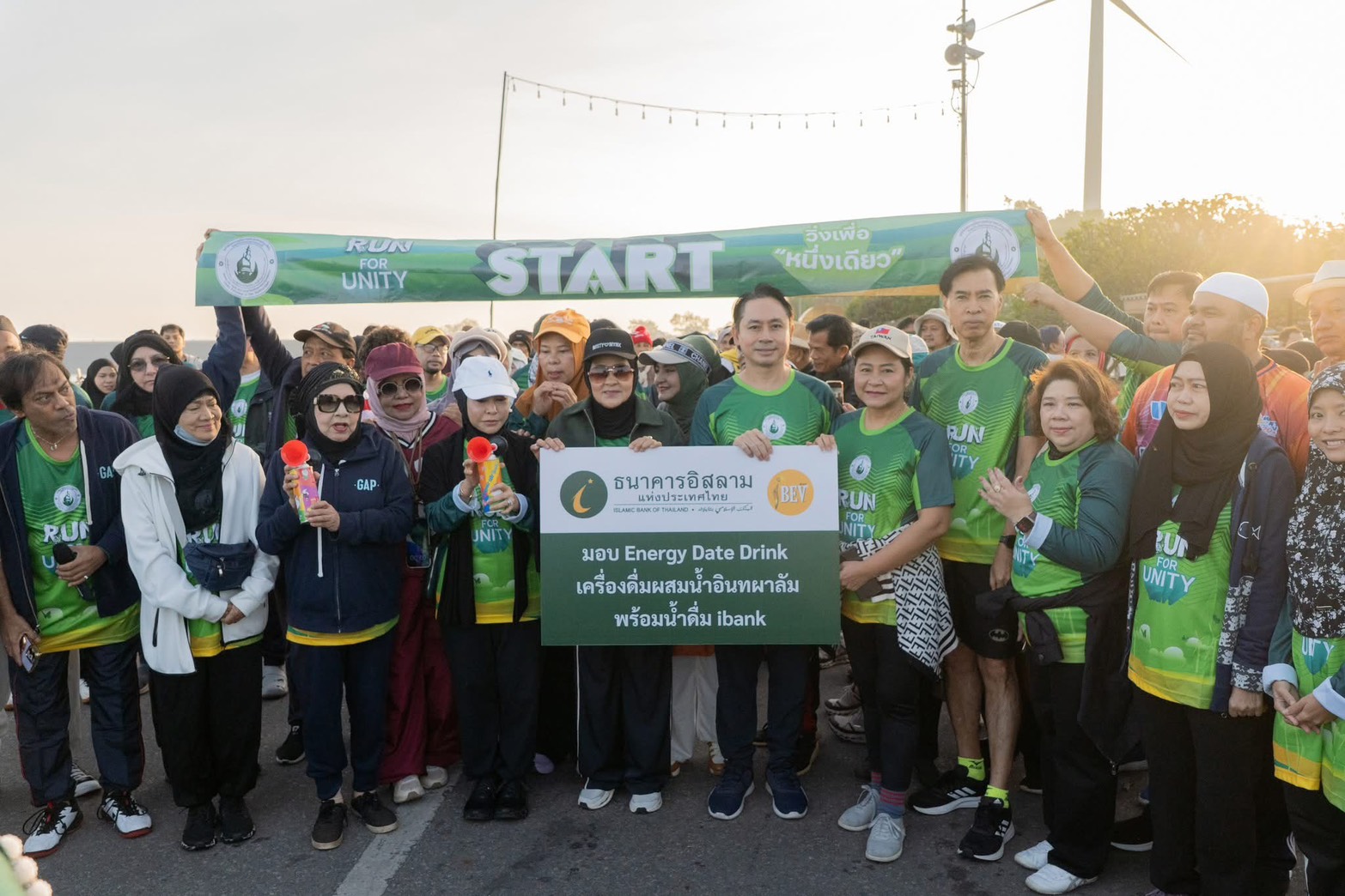 ธนาคารอิสลามแห่งประเทศไทย (ไอแบงก์) โดย นายกูยไวนี สตอหลง ผู้อำนวยการฝ่ายสื่อสารและภาพลักษณ์องค์กร และนางพรทิพา โตวิชัย ผู้อำนวยการฝ่ายกิจการสาขา 2 นำคณะผู้บริหาร เพื่อนพนักงาน และทีมงานสาขานครราชศรีมาเข้าร่วมกิจกรรมวิ่งเพื่อหนึ่งเดียว “Run for Unity ครั้งที่ 1” และมอบ Energy Date Drink เครื่องดื่มผสมน้ำอินทผาลัม จากลูกค้าพันธมิตรในนามไอเบฟ พร้อมนำดื่มไอแบงก์ รวม 900 ขวด แก่ ฮัจยะห์ดารา ขัตติยะอารี ประธานมูลนิธิแม่บ้านไทยมุสลิม ผู้แทนประธานจัดงานให้เกียรติรับมอบ