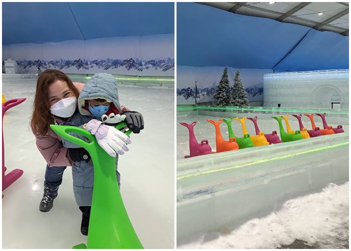 โซนน้ำแข็ง ผู้เข้าชมจะได้พบกับลานน้ำแข็งขนาด 300 ตารางเมตร เครื่องเล่นม้าหมุน และเลนสไลเดอร์ที่ทำจากน้ำแข็งสองเลนซึ่งมีความยาวรวม 148 เมตร ซึ่งเป็นหนึ่งในสไลเดอร์น้ำแข็งในร่มที่ยาวที่สุดในโลก นอกจากนี้ ยังตกแต่งด้วยประติมากรรมน้ำแข็งที่สร้างขึ้นโดยช่างแกะสลักน้ำแข็งระดับปรมาจารย์จากเมืองฮาร์บิน ประเทศจีน ซึ่งเป็นสถานที่จัดงานเทศกาลน้ำแข็งฮาร์บินที่มีชื่อเสียงทําให้ผู้เข้าชมมีโอกาสถ่ายภาพสุดพิเศษนี้ได้ในงานเราได้