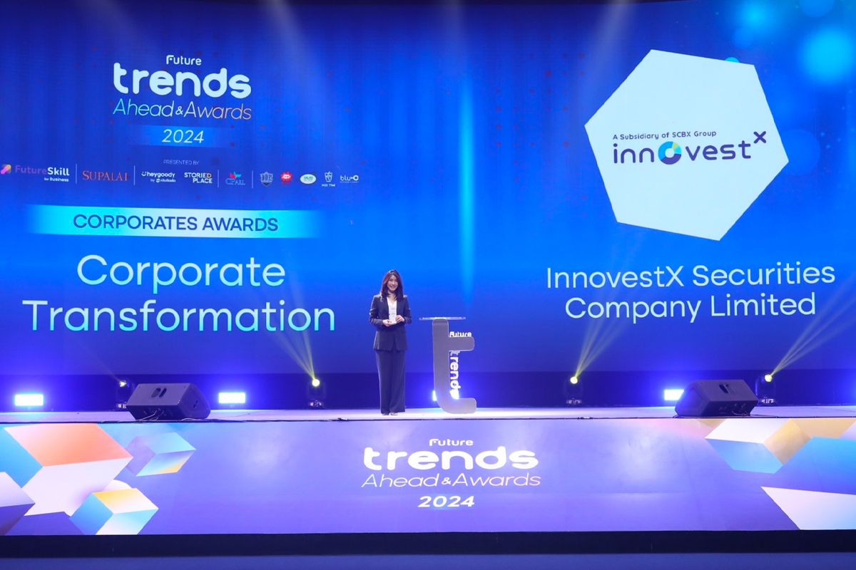 บริษัทหลักทรัพย์ อินโนเวสท์ เอกซ์ จำกัด เรือธงด้านการลงทุนภายใต้กลุ่มเอสซีบี เอกซ์ (SCBX Group) ประกาศความสำเร็จคว้า 2 รางวัล ได้แก่ นายหน้าซื้อ ขายหลักทรัพย์ยอดเยี่ยม (Best Stock Broker 2023) จาก TradingView แพลตฟอร์มระดับโลก ผู้ให้ บริการแพลตฟอร์มการสร้างและวิเคราะห์กราฟทางเทคนิค ที่มีผู้ใช้กว่า 1.4 ล้านรายในประเทศไทยและ กว่า 50 ล้านรายทั่วโลกที่โหวตโดยนักลงทุนผู้ใช้งานจริงของแต่ละโบรกเกอร์ทั่วโลก และรางวัล องค์กรยอดเยี่ยมด้านการเปลี่ยนผ่าน (Corporate Transformation 2023) สาขา Corporate Awards จาก เวที ‘Future Trends Ahead & Awards 2024’ ซึ่งจัดโดย Future Trends สื่อผู้ให้บริการข้อมูลข่าวสาร ด้านเทคโนโลยีการตลาดและนวัตกรรมชั้นนำของประเทศไทย ตอกย้ำบทบาทการเป็นบริษัทหลักทรัพย์ชั้นนำของเมืองไทยที่สามารถตอบสนองความต้องการให้กับนักลงทุนทุกกลุ่มอย่างครบวงจร