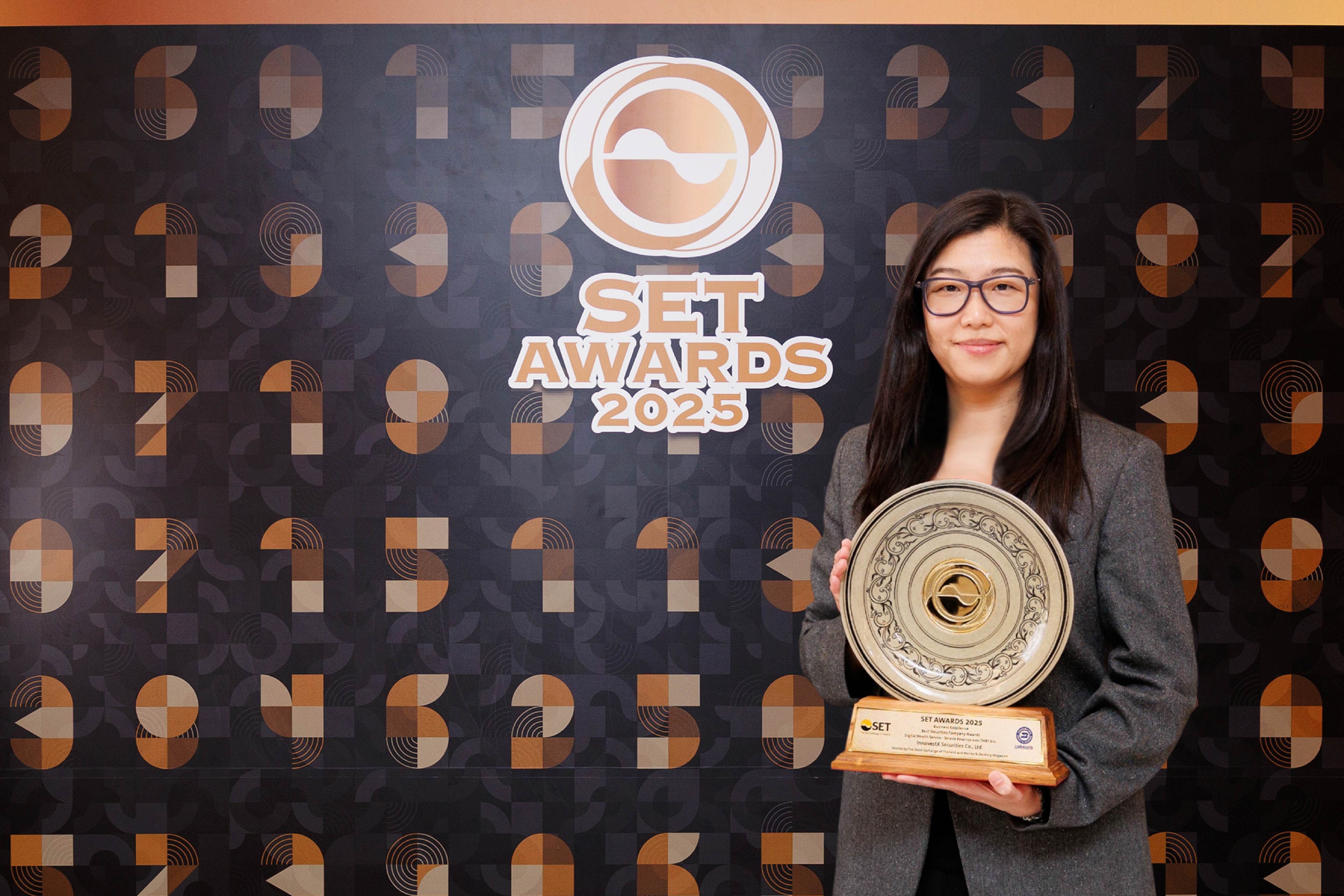 บริษัทหลักทรัพย์ อินโนเวสท์ เอกซ์ จำกัด (InnovestX) บริษัทหลักทรัพย์ภายใต้กลุ่มเอสซีบีเอกซ์ คว้ารางวัลเกียรติยศจากงาน SET Awards 2025 ได้แก่ Best Securities Company Awards และ รางวัล Outstanding ด้านการให้บริการ Digital Wealth Service ซึ่งสะท้อนความไว้วางใจจากนักลงทุนและการยอมรับในคุณภาพการให้บริการบนแพลตฟอร์ม InnovestX ที่พัฒนามาอย่างต่อเนื่อง รวมถึงการให้คำแนะนำลงทุนที่ทันท่วงที รางวัลครั้งนี้นับเป็นอีกก้าวสำคัญที่ตอกย้ำเป้าหมายของ InnovestX ในการสร้างแพลตฟอร์มลงทุนที่ “ครบ ง่าย และได้เปรียบ” ผ่านการเข้าถึงสินทรัพย์หลากหลาย ตั้งแต่หุ้นไทย หุ้นต่างประเทศครอบคลุม 23 ประเทศ 31 ตลาดทั่วโลก DR กองทุน และสินทรัพย์อื่นๆ ภายใต้แนวคิด All-Weather Products ที่ช่วยให้นักลงทุนบริหารพอร์ตได้คล่องตัวในทุกสภาวะตลาด