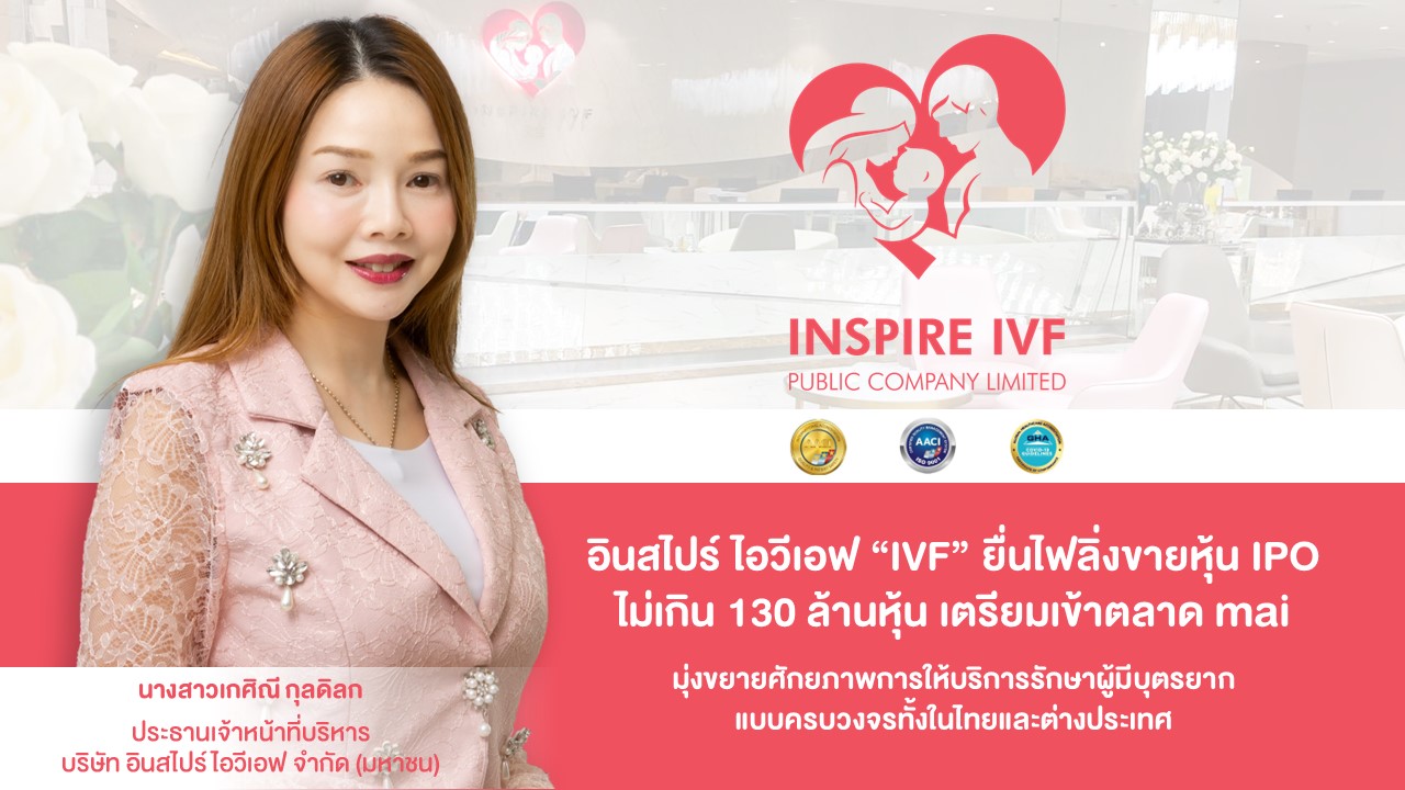 ‘อินสไปร์ ไอวีเอฟ’ ยื่นแบบหนังสือชี้ชวน (Filing) ต่อสำนักงานคณะกรรมการกำกับหลักทรัพย์และตลาดหลักทรัพย์ (ก.ล.ต) เพื่อเสนอขายหุ้นสามัญที่ออกใหม่ต่อประชาชนทั่วไปเป็นครั้งแรก (IPO) จำนวนไม่เกิน 130 ล้านหุ้น หรือคิดเป็นไม่เกินร้อยละ 29.55 ภายหลังจากการเสนอขาย IPO เพื่อเข้าจดทะเบียนในตลาดหลักทรัพย์ เอ็ม เอ ไอ (mai) โดยมีจุดมุ่งหมายในการระดมเงินทุนหลังหักค่าใช้จ่ายในการเสนอขายหลักทรัพย์และค่าใช้จ่ายอื่นๆ ที่เกี่ยวข้องเพื่อใช้ขยายสาขา ลงทุนในธุรกิจที่เกี่ยวข้อง และใช้เป็นเงินทุนหมุนเวียน โดยมี บริษัท ฟินเน็กซ์ แอ๊ดไวเซอรี่ จำกัด เป็นที่ปรึกษาทางการเงิน