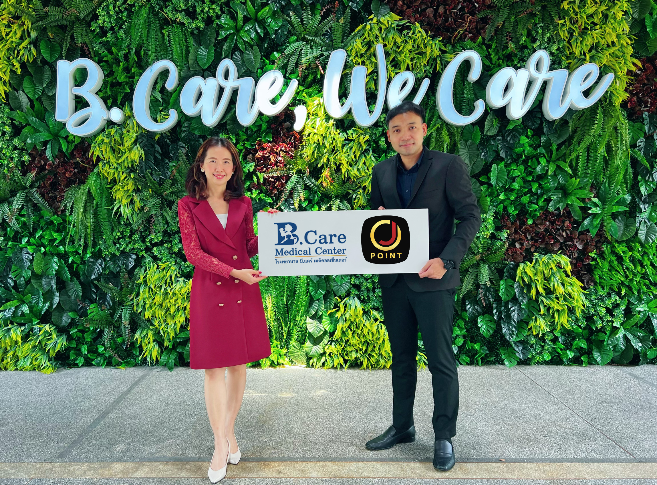 คุณณฐาภพ ธรรมชาติ Assistant Vice President บริษัท เจ อีลิท จำกัด และคุณณัฐชยา อดิโสภณภากร ประธานเจ้าหน้าที่ฝ่ายการตลาด (CMO) โรงพยาบาล บี.แคร์ เมดิคอลเซ็นเตอร์ ผนึกกำลังเพื่อร่วมมอบสิทธิพิเศษแก่ผู้ใช้บริการด้านการแพทย์และสุขภาพที่เป็นสมาชิก J POINT สามารถสะสมคะแนน และแลกคะแนน J POINT ได้ เมื่อเข้ารับการรักษาหรือใช้บริการที่โรงพยาบาล บี.แคร์ เมดิคอลเซ็นเตอร์