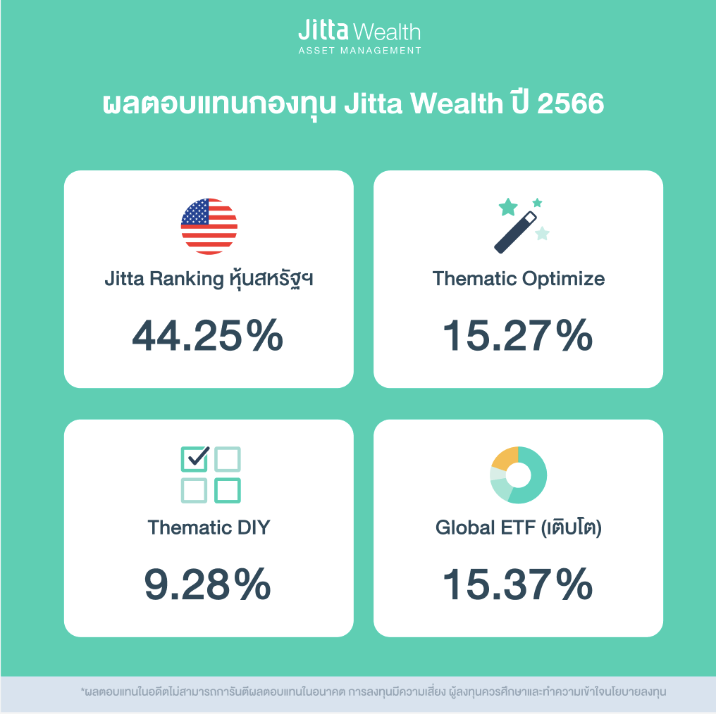 นายตราวุทธิ์ เหลืองสมบูรณ์ ประธานเจ้าหน้าที่บริหาร บริษัทหลักทรัพย์ จัดการกองทุน จิตตะ เวลธ์ จำกัด (บลจ.) สตาร์ตอัปสัญชาติไทย ที่มีจํานวนกองทุนส่วนบุคคลภายใต้การบริหารมากที่สุดในประเทศ เปิดเผยว่า ปี 2566 ภาพรวมการลงทุนทั้งในและต่างประเทศ เผชิญแรงกดดันจากหลากหลายปัจจัย แต่หลายตลาดก็ยังสร้างผลตอบแทนได้ดี โดยดัชนี S&P500 ปรับเพิ่มขึ้น 24.73% ฟื้นตัวจากปีก่อนหน้า ที่ได้รับแรงกดดันจากการปรับขึ้นดอกบี้ย ของธนาคารกลางสหรัฐฯ จึงส่งผลดีต่อกองทุน Jitta Ranking หุ้นสหรัฐฯ ในปี 2566 ให้ได้รับผลตอบแทนที่ดีไปด้วย โดยผลตอบแทนเฉลี่ยของกองทุนส่วนบุคคล Jitta Ranking หุ้นสหรัฐฯ ระหว่างวันที่ 1 ม.ค. -31 ธ.ค. 66 สูงถึง 44.25% พิสูจน์ได้ถึงการทำงานของอัลกอริทึมของJitta Wealth และการลงทุนในช่วงวิกฤติ จะให้ผลตอบแทนที่โดดเด่นตามมา