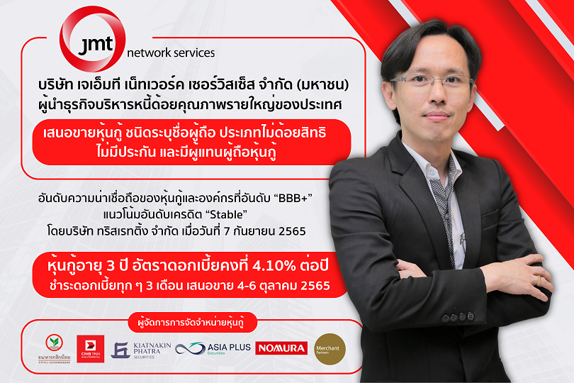 JMT เคาะอัตราดอกเบี้ยหุ้นกู้อายุ 3 ปี ที่ 4.10% เสนอขาย 4-6 ต.ค.นี้