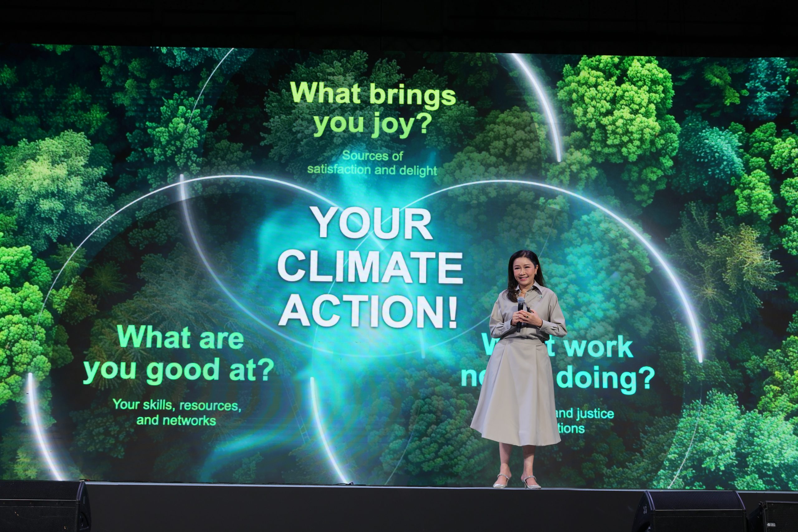 งานนี้ได้รับเกียรติจาก นายเศรษฐา ทวีสิน นายกรัฐมนตรี กล่าวปาฐกถาพิเศษในงานฉายภาพเป้าหมายและทิศทางของประเทศในเรื่องของการแก้ปัญหาโลกร้อน จากการเดินทางไปพบนักลงทุนจะเห็นว่านักลงทุนที่จะลงทุนในต่างประเทศสิ่งที่สนใจ คือ สิทธิประโยชน์จากการลงทุน ความเป็นกลางไม่ฝักใฝ่ฝ่ายใด และพลังงานสะอาด เราจะเห็นว่าประเทศที่เจริญแล้วมีการใช้พลังงานสะอาดมากกว่าประเทศกำลังพัฒนา ประเทศไทยก็ต้องการพลังงานสะอาดจึงต้องเริ่มคิดและลงมือทำ ซึ่งการจะลดก๊าซคาร์บอนในไทยได้นั้นต้องให้ความรู้ทั้งภาคประชาชนและภาคธุรกิจ และในส่วนของภาคการเงินก็มีความสำคัญต่อการปรับเปลี่ยนจึงต้องได้รับการสนับสนุนทั้งเงินกู้และตลาดทุน ซึ่งธนาคารกสิกรไทยได้ทำเรื่องนี้มานานและมีการสนับสนุนเงินกู้ให้กับลูกค้าอย่างต่อเนื่อง รัฐบาลก็จะมีการออก Sustainability-Linked Bond เพื่อผลักดันให้องค์กรหรือหน่วยงานที่เกี่ยวข้องช่วยกันดำเนินนโยบายที่สร้างความยั่งยืน โดยในปัจจุบันบริษัทใหญ่ๆ เข้าใจเรื่องนี้ดี แต่ความน่าเป็นห่วงอยู่ที่ Supply Chain ถ้าไม่สามารถดึงเข้ามาอยู่ในปรัชญาเดียวกันได้ การส่งออกก็จะยากส่งสินค้าไปขายต่างประเทศก็จะถูกปฏิเสธ ดังนั้นสินเชื่อสีเขียวจึงสำคัญที่จะต้องมีเงินทุนในการให้ธุรกิจปรับเปลี่ยน เพราะเราจะทิ้งใครไว้ข้างหลังไม่ได้