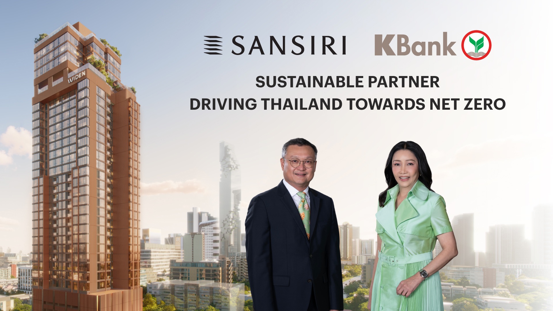 นางสาวขัตติยา อินทรวิชัย ประธานเจ้าหน้าที่บริหาร ธนาคารกสิกรไทย และนายอุทัย อุทัยแสงสุข กรรมการผู้จัดการใหญ่ บริษัท แสนสิริ จำกัด (มหาชน) แถลงความร่วมมือการสนับสนุนสินเชื่อเพื่อสิ่งแวดล้อม หรือกรีนโลน ประเภท Pre-Finance มูลค่า 4,000 ล้านบาท สำหรับ 3 โครงการต้นแบบคอนโดมิเนียมมาตรฐานใหม่ ซึ่งแสนสิริเป็นบริษัทแรกของธนาคารกสิกรไทยที่ใช้เกณฑ์การประเมินสินเชื่อที่เข้มข้นสอดคล้องตาม Thailand Taxonomy และผ่านหลักเกณฑ์การประเมินสินเชื่อเพื่อสิ่งแวดล้อมหรือกรีนโลนจากธนาคารกสิกรไทย สู่ก้าวสำคัญที่สะท้อนถึงบทบาท Bank of Sustainability ในการผลักดันให้คู่ค้ามุ่งดำเนินธุรกิจเพื่อความยั่งยืน ณ ธนาคารกสิกรไทย สำนักงานใหญ่ อาคารพหลโยธิน เมื่อเร็วๆ นี้