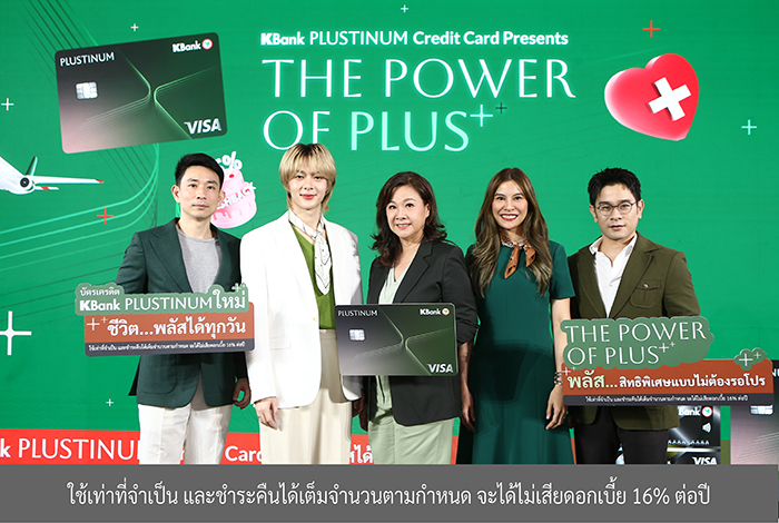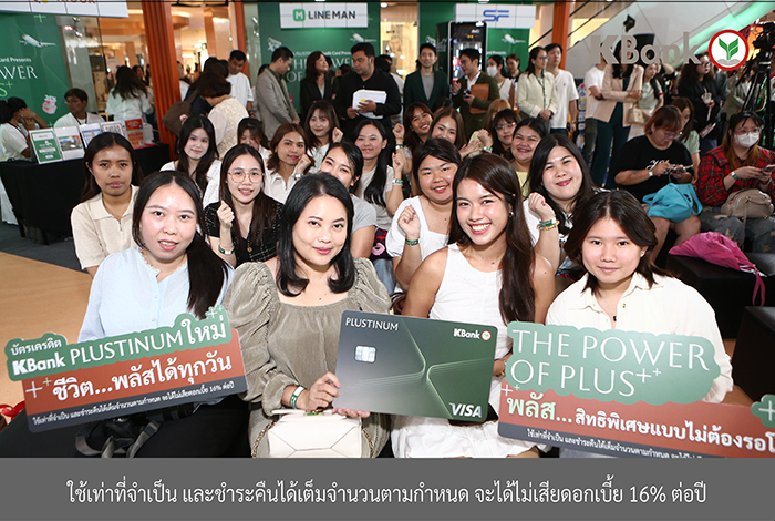 ทั้งนี้ นับตั้งแต่เปิดตัวโฉมใหม่ของบัตรเครดิต KBank PLUSTINUM ยังคงได้รับกระแสตอบรับที่ดีอย่างต่อเนื่อง เห็นได้จากยอดสมัครบัตรที่เพิ่มขึ้นอย่างชัดเจน และกระแสตอบรับบนโซเชียลมีเดีย ซึ่งสะท้อนถึงการออกแบบสิทธิประโยชน์ที่ “พลัส” มาให้ลูกค้าผู้ถือบัตร สอดคล้องกับทุกไลฟ์สไตล์ในการใช้ชีวิตยุคปัจจุบันและแม้ว่างานจะจบไปแล้ว แต่ลูกค้าและผู้ที่สนใจยังสามารถพลัสกันได้อย่างต่อเนื่อง กับสิทธิพิเศษจากบัตรเครดิต KBank PLUSTINUM ให้ “ชีวิต…พลัสได้ทุกวัน” ตั้งแต่วันที่ 7 ตุลาคม 2568-31 ธันวาคม 2569