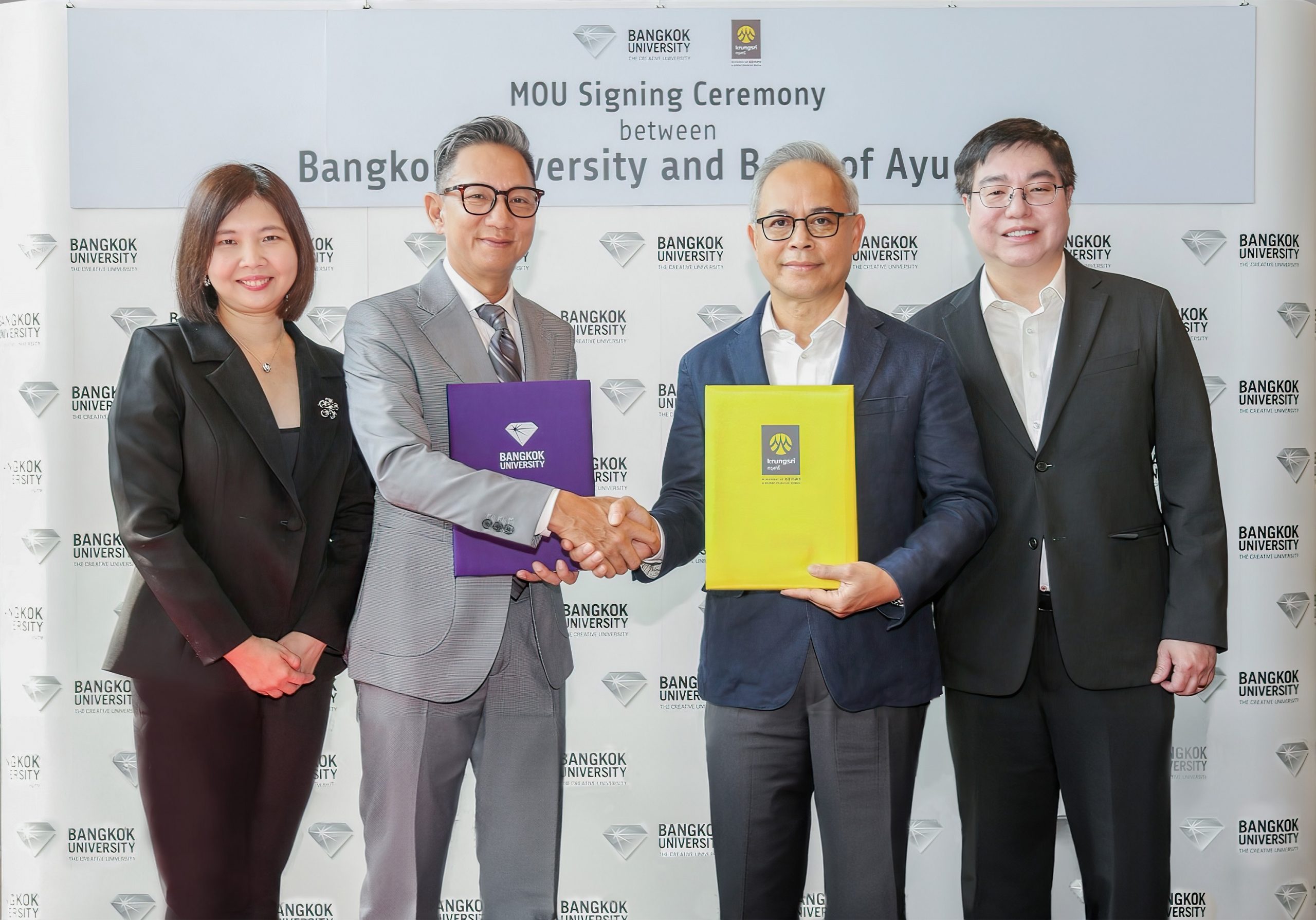 กรุงศรี (ธนาคารกรุงศรีอยุธยา จำกัด (มหาชน)) และ มหาวิทยาลัยกรุงเทพ ร่วมลงนามบันทึกข้อตกลงความร่วมมือ (MOU) เพื่อเสริมสร้างเครือข่ายธุรกิจ ความร่วมมือด้านทรัพยากรบุคคล และสร้างโอกาสการเรียนรู้ให้กับนักศึกษา โดยข้อตกลงความร่วมมือในครั้งนี้เป็นส่วนหนึ่งในการขับเคลื่อนกลยุทธ์เพื่อขยายความร่วมมือระหว่างกรุงศรีและพันธมิตรต่าง ๆ เพื่อช่วยส่งเสริมความแข็งแกร่งให้กับธุรกิจ และมองหาโอกาสในการขยายความร่วมมือทางธุรกิจระหว่างกันในอนาคต