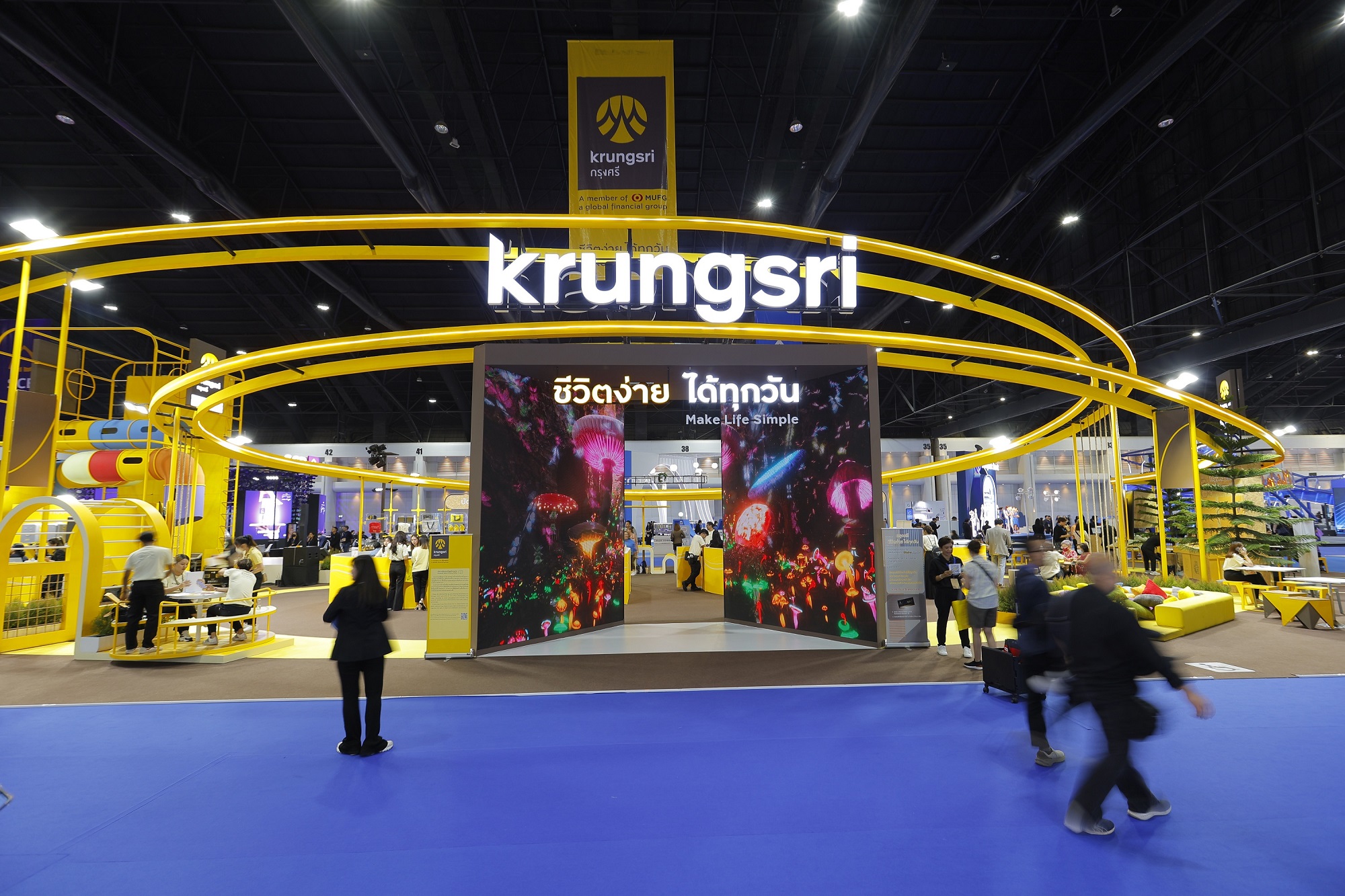 “กรุงศรีอยากให้ลูกค้าและผู้เข้าร่วมงานทุกคนได้รับประสบการณ์ความสุขและสนุกสนานจากการเข้าเยี่ยมชมบูธกรุงศรี ในปีนี้ธนาคารจึงออกแบบและตกแต่งบูธให้มีสีสันและความสดใสมากขึ้น จำลองบรรยากาศสนามเด็กเล่นที่ทุกคนสามารถเข้ามาเป็นส่วนหนึ่งของงาน ร่วมกิจกรรมสนุกๆ หรือแวะมาเช็คอิน ถ่ายภาพที่จุดแลนด์มาร์ค ซึ่งเราเตรียมพื้นที่จอ LED ขนาดใหญ่ และนำเทคนิคการฉายภาพ Mapping มาใช้ ให้ผู้เข้าชมงานได้สัมผัสบรรยากาศเสมือนได้เข้าเป็นส่วนหนึ่งของภาพนั้นๆ หรือสำหรับลูกค้าที่สนใจผลิตภัณฑ์และบริการทางการเงินต่างๆ กรุงศรีเตรียมพร้อมให้ข้อมูล และสามารถสมัคร เพื่อรับโปรโมชันพิเศษภายในงานได้ ทั้งหมดนี้ก็เพื่อสร้างประสบการณ์ “ชีวิตง่าย ได้ทุกวัน” ในแบบของกรุงศรีให้กับลูกค้าและผู้เยี่ยมชมงานทุกคน”