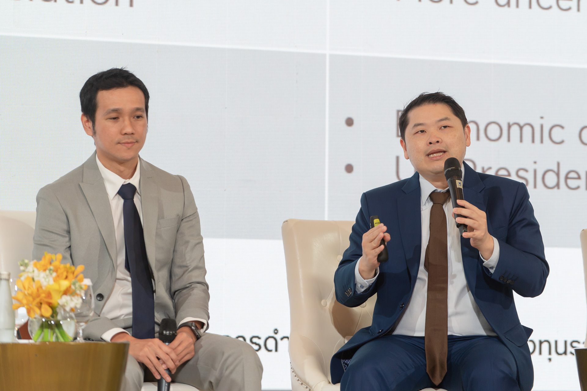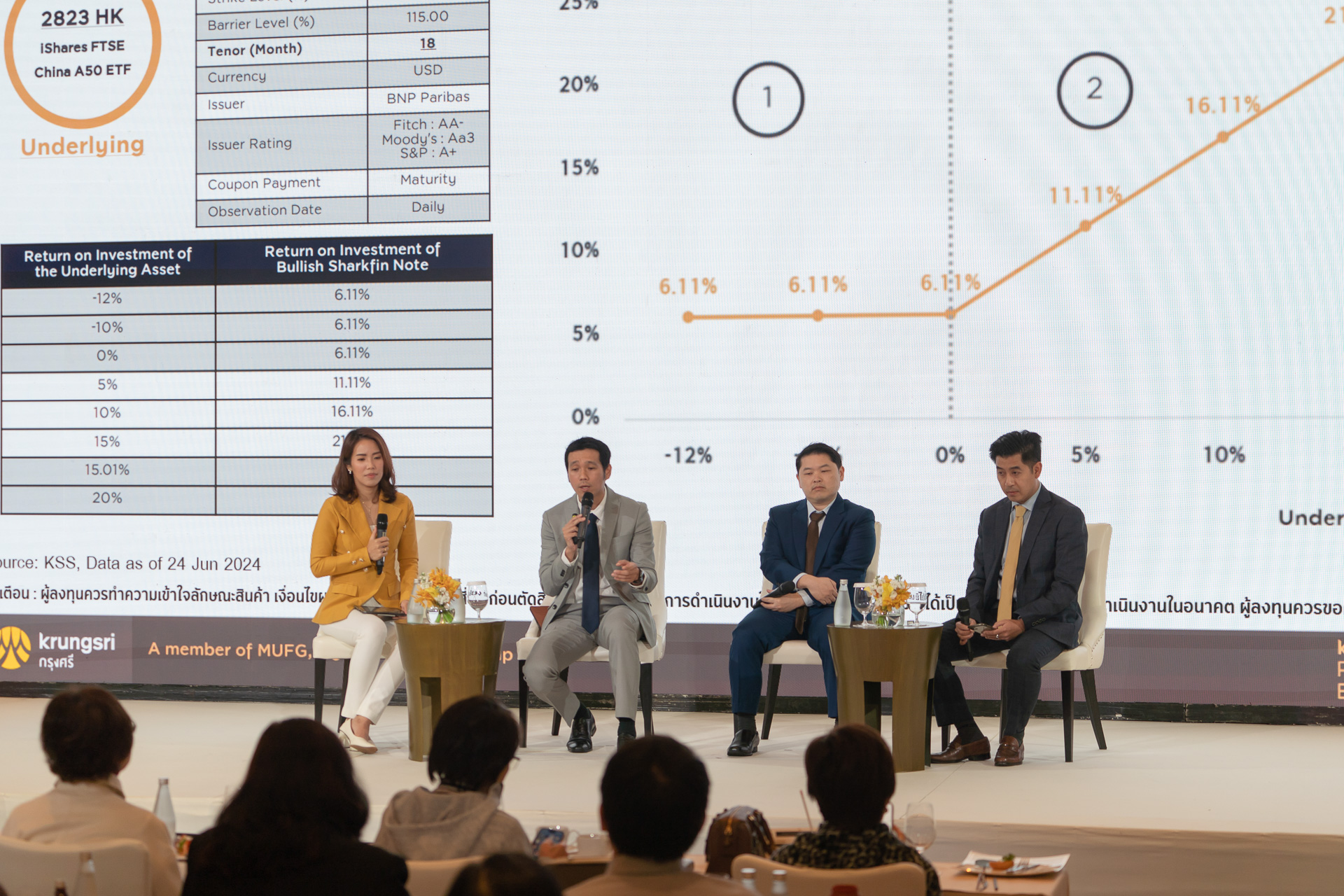 งานสัมมนาครั้งนี้ ได้รับเกียรติจากผู้เชี่ยวชาญด้านการลงทุนของกรุงศรีกรุ๊ป รวมถึงผู้บริหารระดับสูงจากตลาดหลักทรัพย์แห่งประเทศไทย และพันธมิตรระดับโลก BlackRock มาร่วมเผยมุมมองเศรษฐกิจโลก พร้อมแบ่งปันกลยุทธ์ด้านการลงทุนในช่วงครึ่งหลังของปี 2567 โดยเริ่มจาก ดร. ศรพล ตุลยะเสถียร รองผู้จัดการ หัวหน้าสายงานวางแผนกลยุทธ์องค์กรและโครงการกลยุทธ์ ตลาดหลักทรัพย์แห่งประเทศไทย ที่มาเล่าถึงภาพรวมสถานการณ์เศรษฐกิจ และทิศทางตลาดหุ้นไทยในช่วงครึ่งปีหลัง โดยสรุปว่า ท่ามกลางความท้าทายของเศรษฐกิจโลก ประเทศไทยมีเสถียรภาพทางเศรษฐกิจสูงสามารถรองรับเหตุการณ์ต่างๆ ในช่วงที่ผ่านมาได้ดี สำหรับภาพรวมเศรษฐกิจในปีที่ผ่านมา อาจมีปัจจัยในการขับเคลื่อนไม่มาก อย่างไรก็ตามคาดว่าเศรษฐกิจไทยมีแนวโน้มที่จะขยายตัวเพิ่มขึ้นอย่างค่อยเป็นค่อยไปในช่วงครึ่งปีหลังของปี 2567 สืบเนื่องจากการฟื้นตัวอย่างต่อเนื่องของภาคการท่องเที่ยว การส่งออก และการเร่งเบิกจ่ายงบประมาณภาครัฐ ซึ่งเป็นภาพสะท้อนกลับมาที่ตลาดหุ้นไทย โดยมองว่าสถานการณ์การลงทุนตลาดหุ้นไทยยังคงเป็นโอกาสที่น่าสนใจ เนื่องจากราคาหุ้นยังไม่สะท้อนต่อกำไรในอนาคต