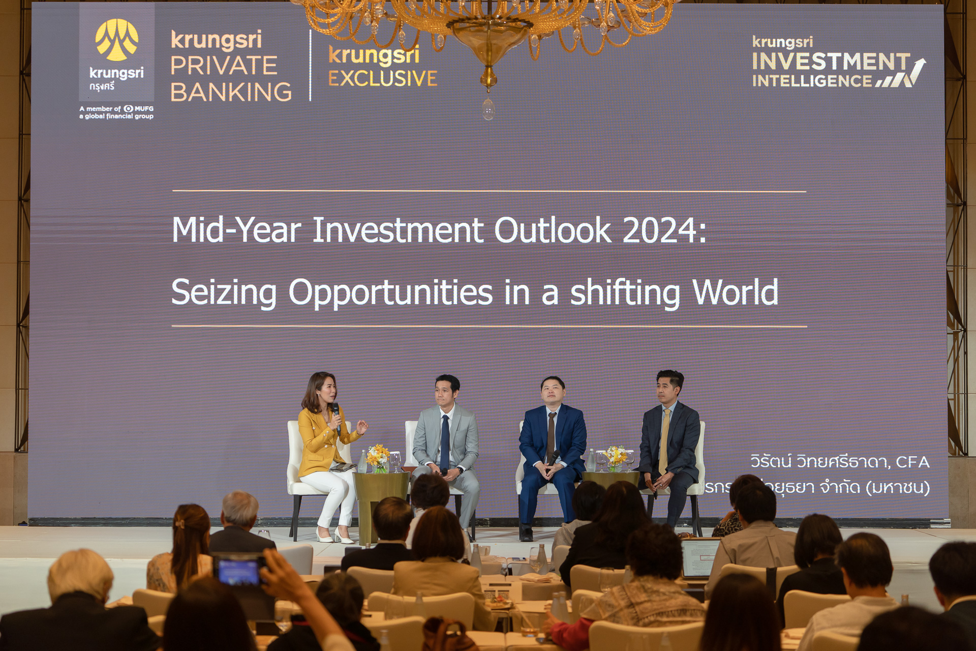 กรุงศรี (ธนาคารกรุงศรีอยุธยา จำกัด (มหาชน) และบริษัทในเครือ) ร่วมกับ BlackRock บริษัทหลักทรัพย์จัดการกองทุนชั้นนำของโลก อัปเดตมุมมองเศรษฐกิจและเทรนด์การลงทุนในช่วงครึ่งหลังของปี 2567 ในงานสัมมนา Mid-Year Investment Outlook 2024: Seizing Opportunities in a Shifting World จัดขึ้นสำหรับลูกค้ากรุงศรี ไพรเวท แบงก์กิ้ง และ กรุงศรี เอ็กซ์คลูซีฟ โดยสรุปว่าสถานการณ์การลงทุนทั่วโลกในช่วงครึ่งปีหลังยังคงผันผวนต่อเนื่องจากความเสี่ยงของอัตราเงินเฟ้อ และความตึงเครียดทางการเมืองระหว่างประเทศ อย่างไรก็ตามคาดว่า FED จะยังลดอัตราดอกเบี้ย 1-2 ครั้งภายในปีนี้ ทั้งนี้ มองว่าการลงทุนธีม AI ยังคงน่าสนใจและมีโอกาสในการเข้าไปลงทุนเพิ่มเติม ขณะที่ตลาดหุ้นไทยมีแนวโน้มปรับตัวดีขึ้น รับอานิสงส์การเร่งเบิกจ่ายงบประมาณของภาครัฐและการฟื้นตัวต่อเนื่องของภาคการท่องเที่ยว พร้อมแนะหุ้นเด่นที่น่าลงทุน ได้แก่ กลุ่มส่งออก-ค้าปลีก-เฮลธ์แคร์-ธุรกิจเกี่ยวเนื่องกับ Data Center
