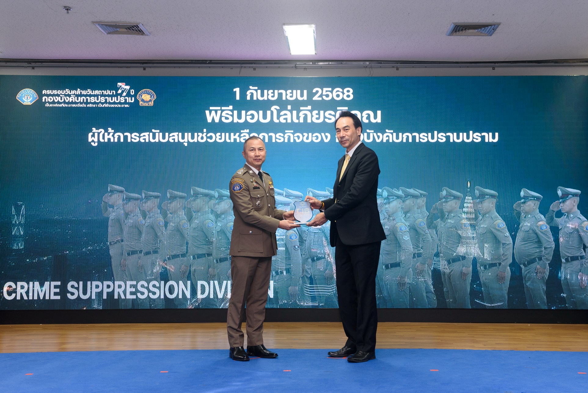 นายตุลย์ โรจน์เสรี ประธานคณะเจ้าหน้าที่ด้านข้อมูลและการวิเคราะห์ระดับองค์กร ธนาคารกรุงศรีอยุธยา จำกัด (มหาชน) เข้ารับมอบโล่รางวัลเกียรติคุณ เนื่องในโอกาสครบรอบ 77 ปีของกองบังคับการปราบปรามจาก พลตำรวจตรี วิทยา ศรีประเสริฐภาพ ผู้บังคับการปราบปราม กองบัญชาการตำรวจสอบสวนกลาง เพื่อแสดงความขอบคุณในฐานะที่กรุงศรีให้การสนับสนุนด้านเทคโนโลยีและระบบการจัดการและวิเคราะห์ข้อมูลสำหรับการตรวจสอบและจัดการบัญชีม้า โดยการดำเนินการเชิงรุกในการป้องกันและจำกัดความเสียหายที่อาจจะเกิดขึ้นกับประชาชนที่ถูกหลอกลวงจากมิจฉาชีพได้อย่างมีประสิทธิภาพมากขึ้น ซึ่งเป็นส่วนสำคัญในการป้องกันและปราบปรามอาชญากรรมทางการเงิน พิธีมอบโล่จัดขึ้น ณ อาคารที่ทำการกองบังคับการปราบปราม กรุงเทพฯ เมื่อเร็วๆ นี้