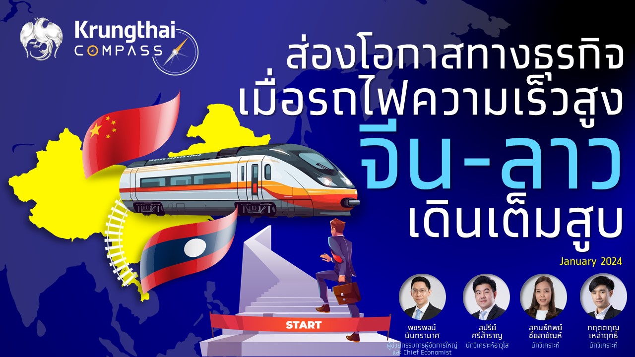 ศูนย์วิจัย Krungthai COMPASS มองจีนและลาวเป็นตลาดที่มีศักยภาพเติบโตสูงจากแรงหนุนของรถไฟความเร็วสูงจีน-ลาว และการปรับเปลี่ยนห่วงโซ่อุปทาน ซึ่งทำให้เกิดการสร้างฐานการผลิตและห่วงโซ่อุปทานใหม่ที่กระจายตัวในภูมิภาคเดียวกันมากขึ้น จะทำให้ผู้ประกอบการไทยมีโอกาสเข้าไปอยู่ในห่วงโซ่อุปทานของจีนและลาวสูงขึ้น คาดการส่งออกสินค้าศักยภาพของไทยไปจีนผ่านรถไฟความเร็วสูงจีน-ลาวเพิ่มขึ้น 2.7 หมื่นล้านบาท ในอีก 7 ปีข้างหน้า แนะผู้ประกอบการไทยใช้ประโยชน์จากโอกาสด้านการค้า การบริการ และการลงทุน เพื่อสร้างการเติบโตทางธุรกิจในอนาคต