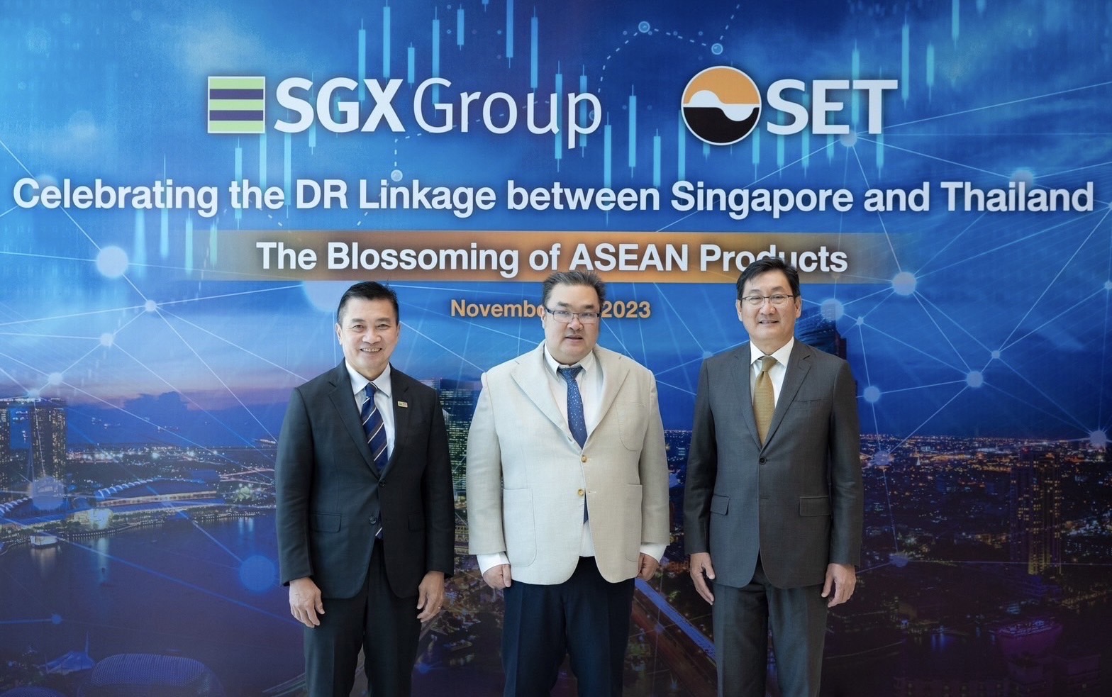 นายรวินทร์ บุญญานุสาสน์ ผู้บริหารสายงานธุรกิจตลาดเงินตลาดทุน ธนาคารกรุงไทย ร่วมงาน Celebrating the DR Linkage between Singapore and Thailand : The Blossoming of ASEAN Product ฉลองความสำเร็จในการเชื่อมโอกาสการลงทุนตราสารแสดงสิทธิในหลักทรัพย์ต่างประเทศ หรือ Depositary Receipt (DR) ระหว่างตลาดหลักทรัพย์แห่งประเทศไทย (ตลท.) และตลาดหลักทรัพย์สิงคโปร์ (SGX) ในฐานะผู้นำในการออกผลิตภัณฑ์ DR เพื่อเปิดโอกาสให้ผู้ลงทุนไทยสามารถลงทุนหุ้นต่างประเทศได้ง่าย โดยคัดเลือกหลักทรัพย์ที่เป็นผู้นำตลาดในอุตสาหกรรมชั้นนำของโลก มีผลการดำเนินงานที่แข็งแกร่งและให้ความสำคัญกับการกำกับดูแลกิจการที่ดี ซึ่งเป็นส่วนสำคัญในการขับเคลื่อนธุรกิจให้เติบโตอย่างยั่งยืน