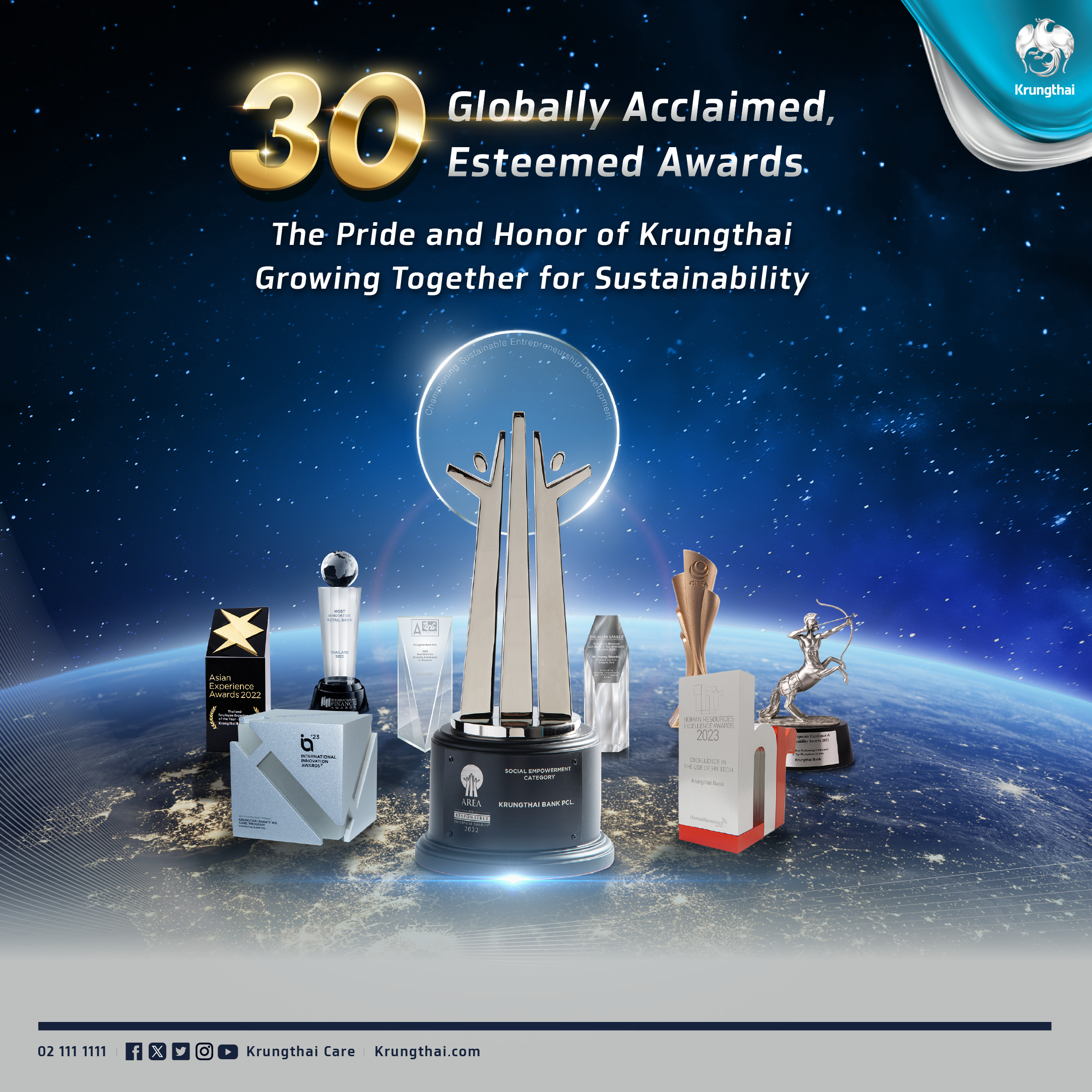 ธนาคารกรุงไทย ในฐานะธนาคารพาณิชย์ชั้นนำของประเทศ มุ่งมั่นพัฒนาผลิตภัณฑ์และบริการทางการเงินที่ทันสมัย เพื่อตอบโจทย์ลูกค้าในทุกมิติ และยกระดับชีวิตคนไทยให้ดีขึ้นทุกวัน ประสบความสำเร็จในการขับเคลื่อนองค์กรด้วยนวัตกรรม โดยยึดหลักการให้ความสำคัญกับสิ่งแวดล้อม สังคม และธรรมาภิบาล (ESG) ตอบโจทย์เป้าหมายการพัฒนาอย่างยั่งยืน (SDGs) ของสหประชาชาติ  ประสบความสำเร็จได้รับการยอมรับจากองค์กรชั้นนำในประเทศและต่างประเทศ สามารถคว้ารางวัลจากเวทีระดับโลกในปี 2566 มากถึง 30 รางวัล ทั้งรางวัลสุดยอดผู้นำองค์กร รางวัลด้านความยั่งยืน รางวัลด้านการพัฒนาผลิตภัณฑ์และบริการ รางวัล Digital Banking  และรางวัลด้านการบริหารจัดการทรัพยากรบุคคล