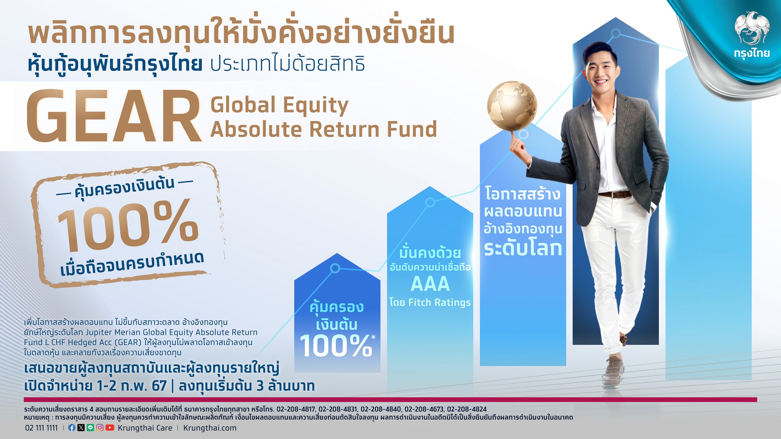 กรุงไทยเสนอขายหุ้นกู้อนุพันธ์กรุงไทย GEAR รับผลตอบแทนตามหุ้นทั่วโลก เปิดจองซื้อ 1-2 ก.พ. 67