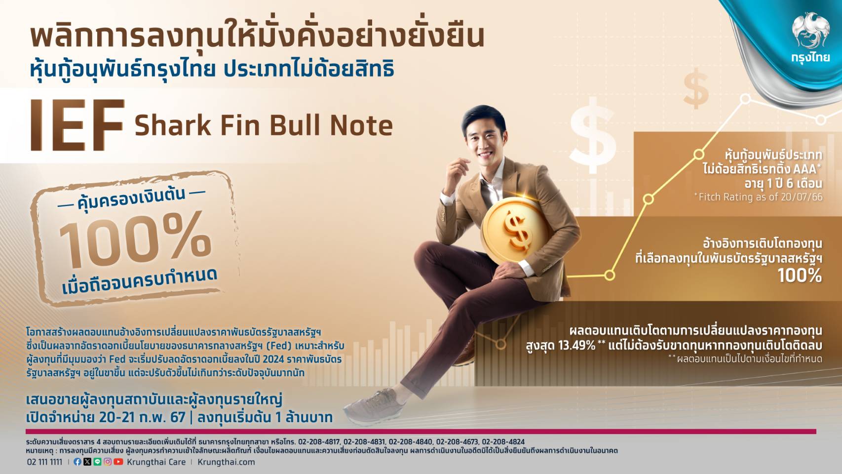 กรุงไทยเสนอขายหุ้นกู้อนุพันธ์ชุดใหม่ “IEF Shark Fin Bull Note” คุ้มครองเงินต้น100% ดีเดย์ 20-21 ก.พ.นี้