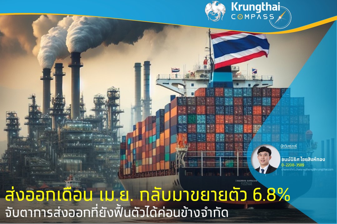 ส่งออกเดือนเม.ย.กลับมาขยายตัว 6.8% จับตาการส่งออกที่ยังฟื้นตัวได้ค่อนข้างจำกัด