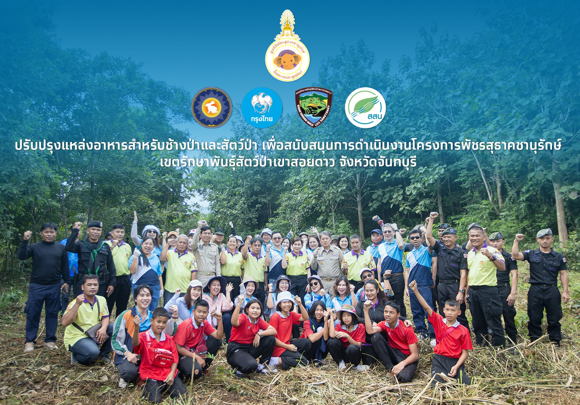 พลเอก เฉลิมชัย สิทธิสาท องคมนตรี ในฐานะประธานกรรมการบริหารมูลนิธิพัชรสุธาคชานุรักษ์ ในพระบรมราชูปถัมภ์ เป็นประธานในพิธีเปิดกิจกรรมปรับปรุงแหล่งอาหารสำหรับช้างป่าและสัตว์ป่าอื่นในพื้นที่ป่าอนุรักษ์ เขตรักษาพันธุ์สัตว์ป่าเขาสอยดาว จังหวัดจันทบุรี โดยมี นายมนต์สิทธิ์ ไพศาลธนวัฒน์ ผู้ว่าราชการจังหวัดจันทบุรี ดร.รอยบุญ รัศมีเทศ ผู้อำนวยการสถาบันสารสนเทศทรัพยากรน้ำ ให้เกียรติร่วมงาน โดยมีคณะผู้บริหาร พร้อมพนักงานกรุงไทยจิตอาสา “VVE Vayu Volunteer” ประชาชนในพื้นที่ ตลอดจนภาคีเครือข่าย ร่วมทำโป่งเทียม เพิ่มแร่ธาตุที่จำเป็น ช่วยเสริมแหล่งอาหารของช้างป่าและสัตว์ป่าให้สมบูรณ์