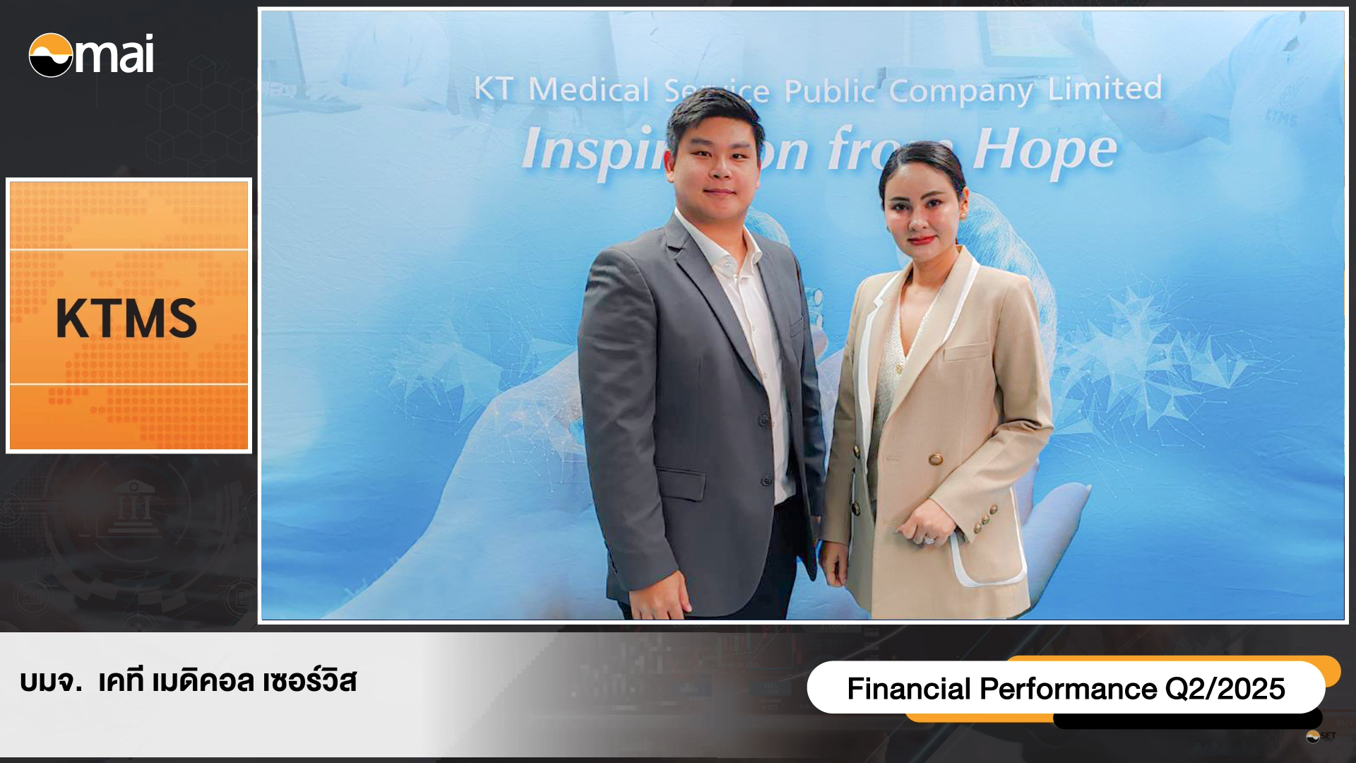 นางสาวกาญจนา พงศ์พัฒนะเดชา (ขวา) ประธานเจ้าหน้าที่บริหาร พร้อมด้วย นายศุภณัฐ พร้อมศิริพงษ์ (ซ้าย) ประธานเจ้าหน้าที่บริหารด้านการเงิน บมจ.เคที เมดิคอล เซอร์วิส หรือ KTMS ร่วมนำเสนอข้อมูลภายในงานบริษัทจดทะเบียนพบนักลงทุน (Opportunity Day) ผ่านแพลตฟอร์มออนไลน์ของตลาดหลักทรัพย์ฯ ภายหลังประกาศงบงวด 6 เดือนแรกปี 2568 มีกำไรสุทธิ 21.08 ล้านบาท เพิ่มขึ้น 12.62 ล้านบาท หรือคิดเป็น 149.17% เมื่อเทียบกับช่วงเดียวกันของปีก่อน (YoY) โดยมีรายได้จากการจำหน่ายสินค้าและบริการ 342.86 ล้านบาท เพิ่มขึ้น 68.10 ล้านบาท หรือคิดเป็น 24.79% (YoY)