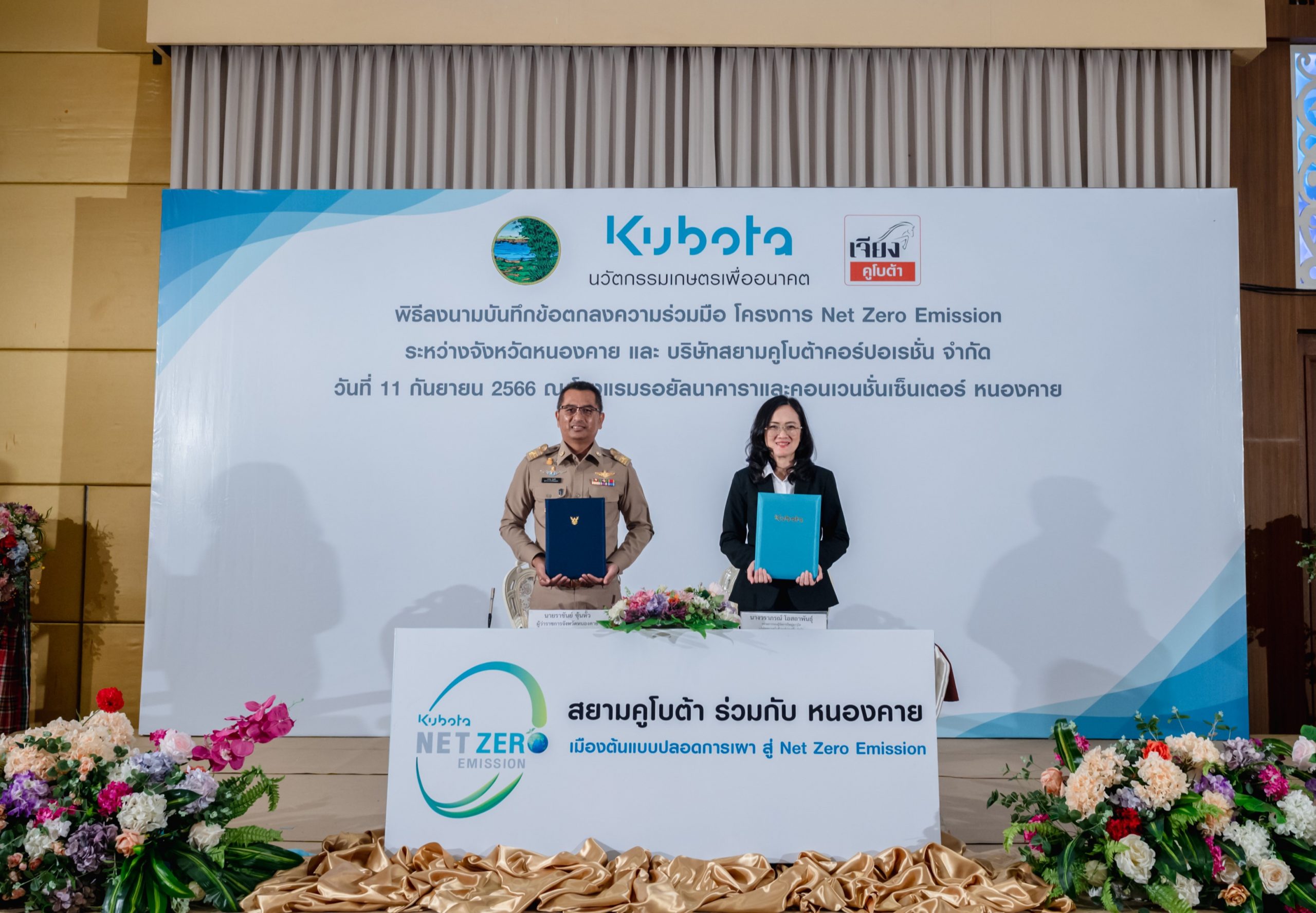 ด้าน นายราชันย์ ซุ้นหั้ว ผู้ว่าราชการจังหวัดหนองคาย กล่าวว่า “ความร่วมมือกันในโครงการ KUBOTA Net Zero Emission ถือเป็นประโยชน์อย่างมากต่อจังหวัดหนองคาย เนื่องจากจังหวัดหนองคายมีพื้นที่เกษตรกรรม คิดเป็นร้อยละ 64 ของพื้นที่ทั้งหมด หรือ 1,226,524 ไร่ ซึ่งในปี 2566 พบว่าจังหวัดหนองคายมีจุดความร้อนจากการเผา จำนวน 912 จุด เป็นจุดความร้อนภาคเกษตร 590 จุด และจุดความร้อนในเขตพื้นที่ป่า 322 จุด จะเห็นได้ว่าเกษตรกรยังมีการเผาตอซังข้าวและเศษวัสดุเหลือใช้ทางการเกษตร เพื่อความสะดวกในการไถ เพราะหากไม่เผาการไถกลบทำได้ยากและมีค่าจ้างสูงกว่า อีกทั้งเกษตรกรมีเครื่องมือเครื่องจักรกลการเกษตรในการเตรียมแปลงเพาะปลูกไม่เพียงพอ เพราะส่วนใหญ่เป็นเกษตรกรรายย่อยที่ยังขาดความเข้าใจถึงผลกระทบจากการเผาที่มีผลให้เกิดภาวะโลกร้อนด้วยจังหวัดหนองคายเชื่อว่าการลงนามในครั้งนี้จะเป็นการรณรงค์ส่งเสริมให้เกษตรกรตระหนักถึงความสำคัญของโครงการเกษตรปลอดการเผา (Zero Burn) การนำนวัตกรรมเครื่องจักรกลการเกษตรและองค์ความรู้ด้านการเกษตรมาปรับใช้เพื่อการทำการเกษตรลดโลกร้อน และลดปัญหาฝุ่นควัน PM 2.5 เพื่อสร้าง “หนองคาย เมืองต้นแบบปลอดการเผาสู่ Net Zero Emission” ให้เกิดขึ้นได้จริง”