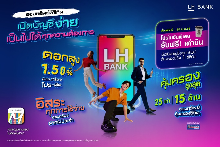 LH Bank ออกแคมเปญเงินฝากออมทรัพย์ดิจิทัล ชูจุดเด่น ฝาก ถอน โอน จ่าย คล่องตัว ไม่ต้องไปสาขา ด้วย 4 ผลิตภัณฑ์เงินฝากออมทรัพย์ดิจิทัล เพิ่มทางเลือกในการออมตอบโจทย์ทุกไลฟ์สไตล์ พร้อมโปรโมชันสุดฟินเมื่อเปิดบัญชีออมทรัพย์ดิจิทัล คุ้มครองชีวิต 1 รับเครื่องดื่มเต่าบิน ฟรี! ทันที