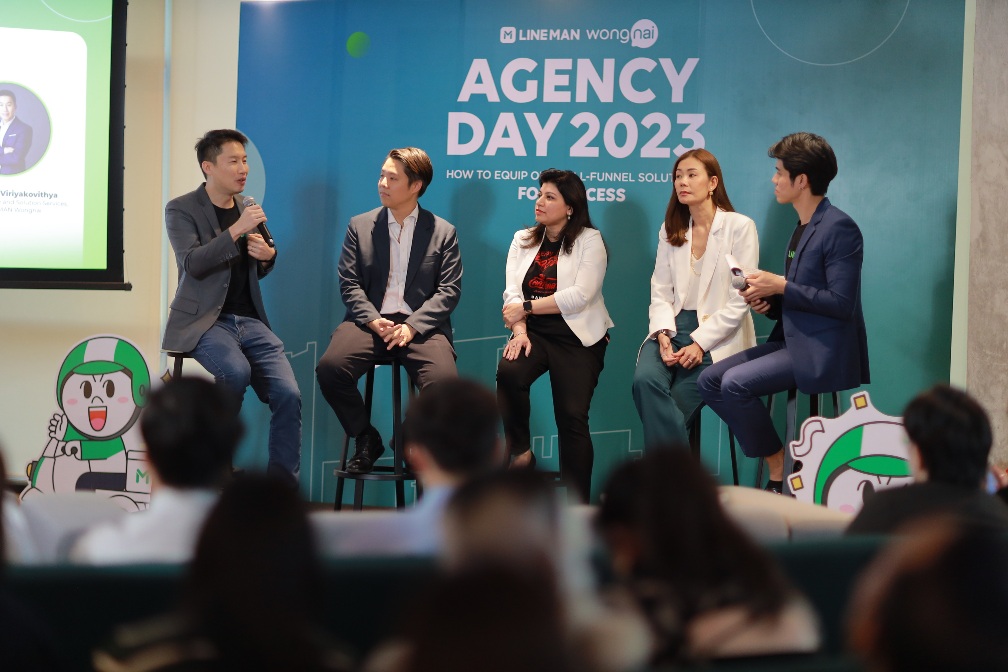 ภายในงาน “LINE MAN Wongnai Agency Day 2023” ได้รับเกียรติจาก คุณจิตราวิณี วรรณกร ผู้ช่วยกรรมการผู้จัดการ ธนาคารกสิกรไทย, คุณริชา ซิงห์ ผู้อำนวยการฝ่ายการตลาด โคคา-โคล่า ประจำประเทศไทย เมียนมา และลาว, คุณธนวรรธ ดำเนินทอง ผู้จัดการทั่วไป บริษัท เบอร์เกอร์ (ประเทศไทย) จำกัด และ คุณเอกลักษณ์ วิริยะโกวิทยา ประธานเจ้าหน้าที่ฝ่ายปฏิบัติการ Lifestyle & Solution Services จาก LINE MAN Wongnai มาร่วมอัปเดตเทรนด์การตลาดดิจิทัลและเจาะลึกเบื้องหลังความสำเร็จของแบรนด์ชั้นนำกับการทำการตลาดแบบเหนือชั้นบน LINE MAN Wongnai โดยมีคนในแวดวงโฆษณาและการตลาดจากเอเจนซี่ชั้นนำเข้าร่วมงาน
