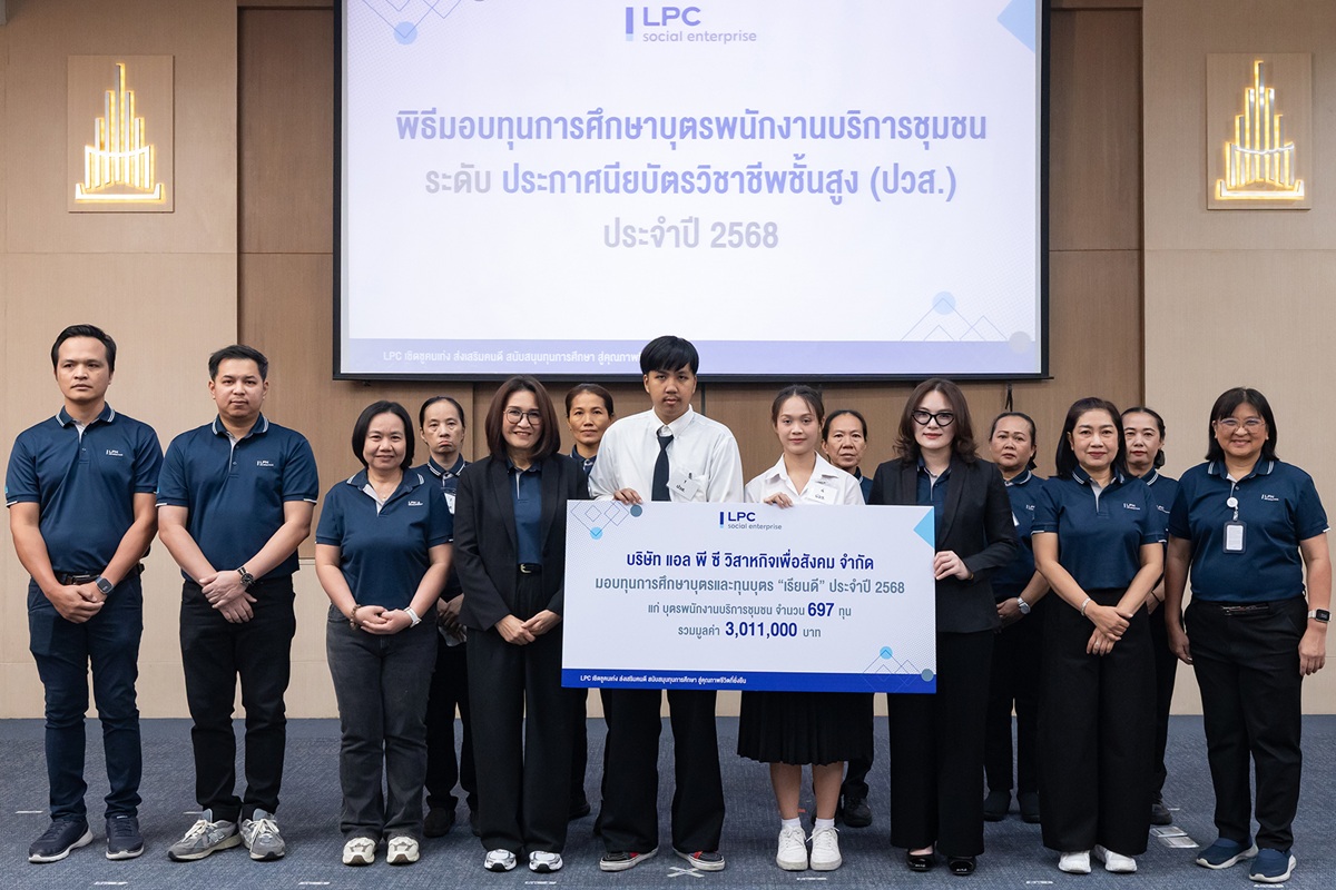 ล่าสุด LPC ได้จัดกิจกรรมมอบทุนการศึกษาบุตรและทุนเรียนดี ประจำปี 2568 ให้แก่บุตรของพนักงานกลุ่ม “แม่บ้าน LPC” และ “แจ๋วลุมพินี” จำนวน 697 ทุน รวมมูลค่า 3.01 ล้านบาท เพื่อช่วยแบ่งเบาภาระค่าใช้จ่ายด้านการศึกษา และสร้างรากฐานอนาคตที่มั่นคงให้กับครอบครัวพนักงาน