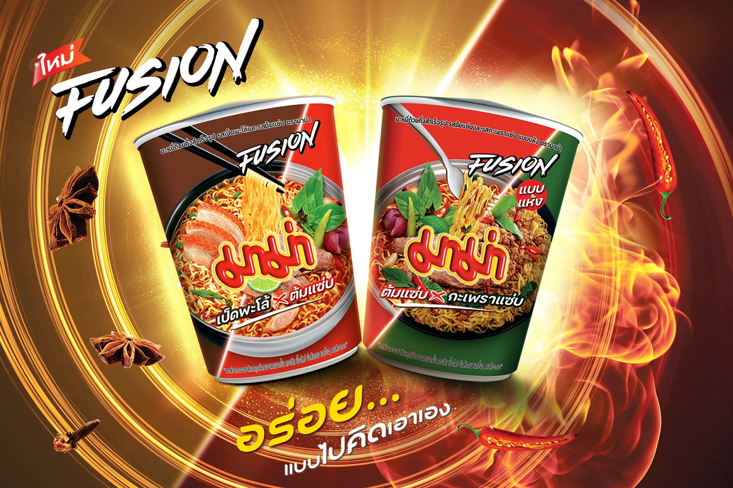 “มาม่า” สร้างความสนุก และแปลกใหม่ให้กับตลาดบะหมี่กึ่งสำเร็จรูป ตามเทรนด์ในโลกโซเชียล ที่มีการผสมผสานบะหมี่กึ่งสำเร็จรูป 2 รสชาติเข้าด้วยกัน โดยมาม่านำเสนอประสบการณ์ใหม่กับการออกผลิตภัณฑ์ มาม่าคัพ ที่มาในชื่อซีรี่ย์ FUSION เป็นการผสมผสานร่วมกันของ 2 รสชาติ ลงไปในถ้วยเดียว ที่อร่อยถึงเครื่อง กลมกล่อมแบบลงตัว ที่ให้ผู้บริโภคได้เลือกลิ้มลองถึง 2 รสชาติใหม่