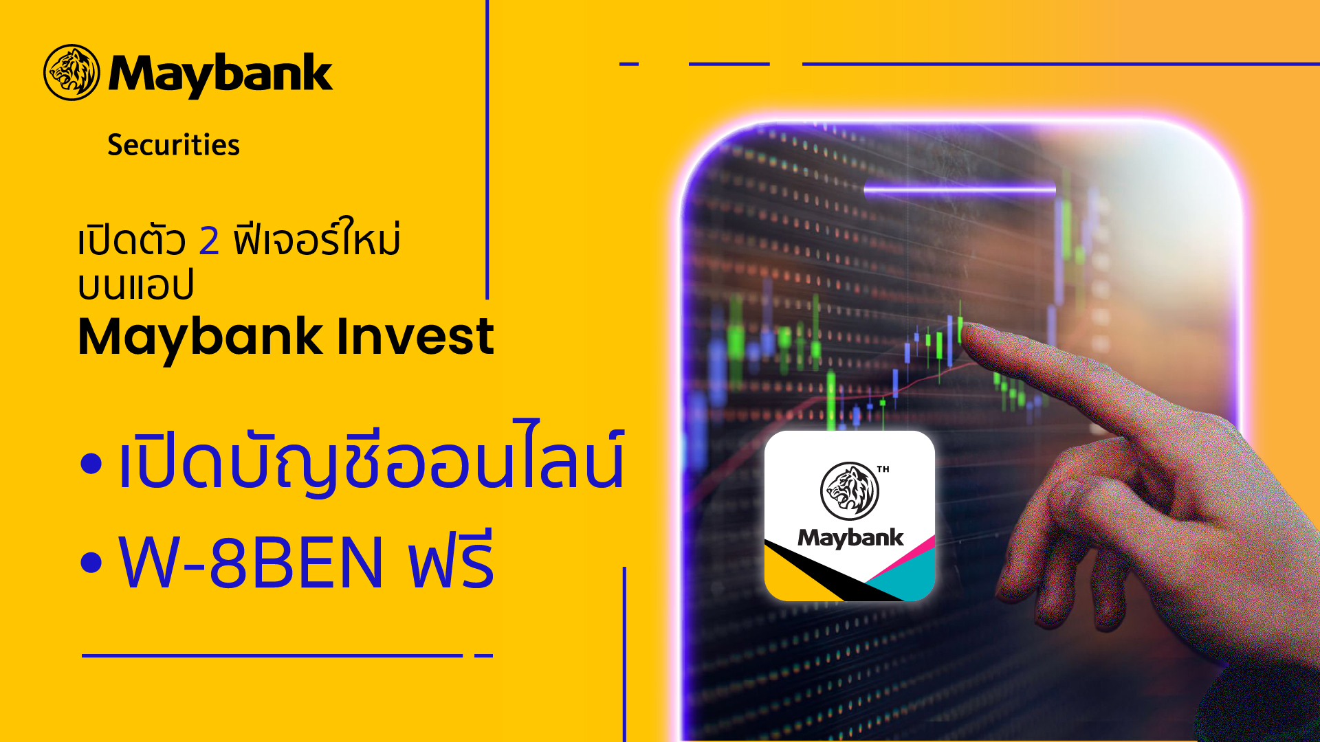 ฟีเจอร์เปิดบัญชีผ่านแอปพลิเคชัน Maybank Invest ช่วยให้การเปิดบัญชีเพื่อการลงทุนเป็นไปได้อย่างง่ายดาย รวดเร็ว และครบจบในแอปเดียว เพียงแค่ดาวน์โหลดแอปพลิเคชัน Maybank Invest ก็สามารถเปิดบัญชีได้ทันทีและเริ่มเทรดได้ในวันเดียวกัน (ในเวลาทำการ 08.00–16.00 น.) สำหรับหุ้นและผลิตภัณฑ์อื่นๆ ครอบคลุมทุกผลิตภัณฑ์การลงทุนในแอปเดียว ไม่ว่าจะเป็นหุ้น กองทุน หรือตราสารหนี้ ยกเว้นการเปิดบัญชีสำหรับอนุพันธ์และหุ้น DRx ซึ่งจะใช้ได้ในวันถัดไป หลังจากได้รับการอนุมัติ
