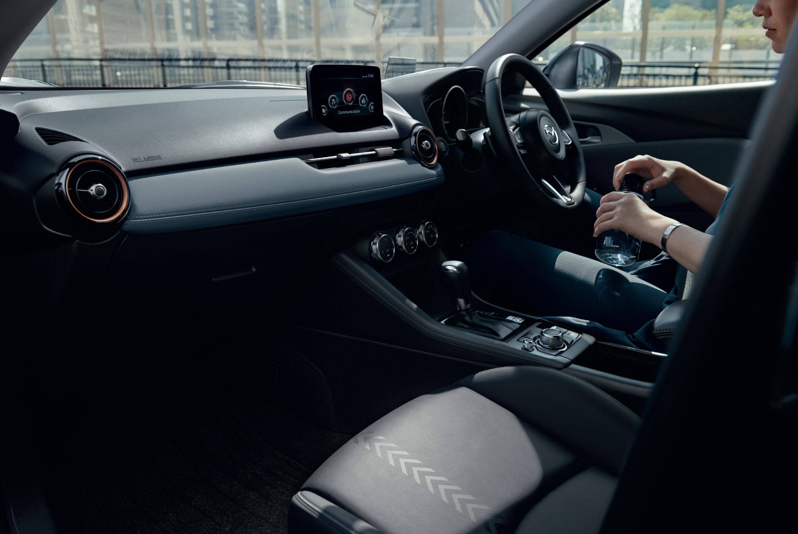 ภายในห้องโดยสารของ New Mazda CX-3 ยังคงความสะดวกสบายครบครัน โดยได้รับการพัฒนาภายใต้คอนเซ็ปต์ HMI (Human-Machine Interface) ด้วยการออกแบบฟังก์ชั่นการใช้งานและจัดวางอุปกรณ์ต่างๆ ในตำแหน่งที่เหมาะสมโดยยึดหลักปรัชญามนุษย์เป็นศูนย์กลาง เพื่อให้ผู้ขับไม่ต้องละสายตาจากถนน มาพร้อมระบบควบคุมการเปลี่ยนเกียร์ที่พวงมาลัย Sports Paddle Shift ช่วยให้การขับขี่เป็นไปอย่างสนุกสนานเร้าใจ และช่วยให้เปิดรับประสบการณ์ใหม่ๆ ด้วยหลังคาซันรูฟแบบไฟฟ้า